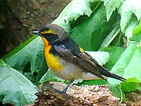 ![]() キヅタアメリカムシクイ・脇・頭央・尾の3箇所が黄色い。 |