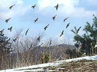 用事で数日鳥見から離れ、午後久しぶりに服部緑地へ行くとまた近くにヒレンジャクの群れ。その前に小鳥の森でミヤマホオジロ・アオジ・ヒガラ、うづわ池でミコアイサと結構賑やか。フクロウも時々出ているそうだ。ひと通り廻って最後に皿池のヒレンジャクに行った。こちらは予想通りというか、まさしく100羽くらいが目の前で飛び交っている。近くて、撮り放題。カメラマン達も一様に満足顔。ヒレンジャクはもういい、キレンジャクが見たい! | |