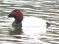![]() ヨシガモの群れに混じって、クビワキンクロが居た |