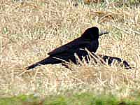 ![]() コクマルガラス・中間型 手前、畦の上にコクマルガラス2羽・あとはミヤマカラス |