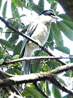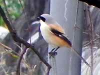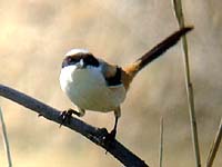 ![]() タカサゴモズ 遠目にもはっきりわかる白い腹と背中の美しい羽模様と色合い |