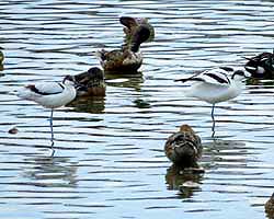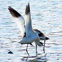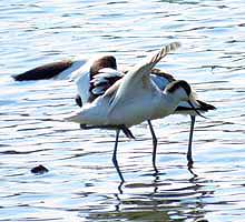 珍鳥が出る時は次々と矢継ぎ早やに出現することがあるものだ。昨日に続き今日はソリハシセイタカシギ(=アボセット)2羽のニュース。山陽電鉄の江井ヶ島駅の近くの池だという。ここは以前から何度か来たことがある。最初は十年前位にシマアジ目当てで来た。この夏にはヨシゴイ2羽を撮りに大勢が来たようだ。私は躊躇して結局行かなかったが、代りのヨシゴイは大泉緑地で撮れたので悔いは無い。今回のアボセットも過去に数回撮っているが、聞くとやはり行きたくなる魅力的な鳥だ。現地に着くと池の周りにズラリすごいカメラマンの群れ。着いた池端からは反対側に居て超遠く、それでも取りあえず撮っているとすぐさま飛び出した。えぇ、まだ碌に撮ってないのに・・。どうやら隣接している大池に飛んで行ったようだ。徐々にカメラマンが移動していく。私も流れに乗って移動していると誰かが立止まり。草原の何かを撮りだした。??私は見向きもせずアボセットの方へ急いだが、後で、コウノトリが居たと知った。うわぁ、勿体ないことをした・・。大池では2羽とものんびりとくつろぎ、たまに羽繕いなどするが、大方は嘴を背中に埋めて眠ってばかり。どうやら2羽は親子のようで、お互い寄り添うように近くにいる。光線がイマイチだが何とかたっぷり撮れて、途中でさっきのコウノトリが頭上を飛んだりして、充実感たっぷり。ここでまた先日大阪城への道案内をした鳥友さんと出会い、帰りに明石城を散策し、名物明石焼きを食べに「魚の棚」通へ行き、買物などもして、珍しく撮り鳥以外の時間を過した。それにしても3日連続の鳥撮り、疲労限界の赤信号だ。 | |
