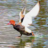 ![]() 変?カモ ホシハジロとアカハジロの交雑種? |