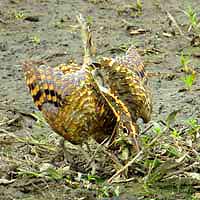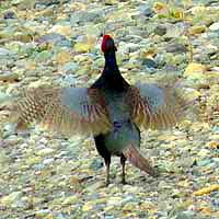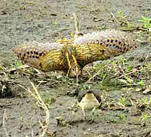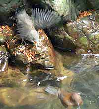 ![]() 子供?の方はあまりパフォーマンスしなかったが、一度だけ羽広げを見せてくれた。 |