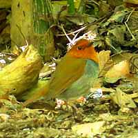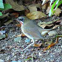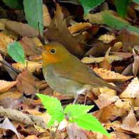 今日は大阪城の様子が分からないまま、様子見に出かけた。リアルタイムで情報を聞ける人が居れば好都合なのだが、居なければ自分で確かめに行くしかない。これというお目当ての鳥が無い時は自転車が重い。飛騨の森に着くと、「え、コマドリの♀が居るの?」春コマドリ、秋ノゴマというだけに、秋のコマドリは稀少だ。いつもの餌場から数十m離れた愛の森との中間辺り。半ばあきらめかけていたコマドリ、♀ながらとても可愛い!そこでまたまた、桜広場のノゴマ♀を聞いた。ノゴマの♂は先般よりあちこちで出ているが、♀は今季初だ。ワァ、当てもなくぶらりときたのに、大収穫だ。 | |