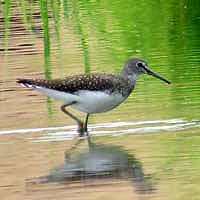 ![]() ソリハシセイタカシギ2羽 最初は中学校の東北側の池に居たが、すぐに飛んだ |