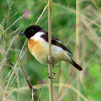 ![]() ホオアカ 2羽 赤川鉄橋の土手下。ほとんど草に隠れて、居るのに見えない・・。 |
