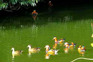 | 2021年10月21日(木) in千里中央公園 オシドリの群れ12羽以上 |