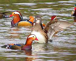 ![]() オシドリ ♂若 ♂成鳥 このどんぐりの実に寄ってくる ♀ |
