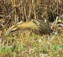 今日は季節相応の寒さとなった。午前中、家事をしながら近場の公園や大阪城の様子を窺がうがこれといった情報もなく、午後ブラリとMFをのぞいてみた。常連さんが二人、鳥っ気はなく、珍しく一人と喋り出し、偶然お互いに文章を書くのが好きだという話になった。私の「カナダ一人旅」という紀行文の冊子を読んでくれるというので、今度出会うまでに用意すると約束して、随分話し込んだなと時間をみるともう3時になる。あわてて最近ヨシゴイがよく出ている霊園池に回った。昨日は昼前に出て、一昨日は4時半頃に池の端から端へ飛んだとか・・。行ってみると既に情報を聞いた10人余りが待機中。話し込んでいた間はでていなかったらしく、そろそろだねと言い合っているうちに、「あ、居る!」と女性の声。葦の根元でのっそりと首を伸ばしている。それにしても超分かりにくいものを、よくぞ見つけてくれたこと・・。皆一斉にカメラを向けたが、一人「場所が分からん」と訴えている人がいる。ヨシゴイは少し動き、おもむろに魚を捕って葦の中へ消えた。まともには全身を出さなかったが、ほとんどの人が何とか証拠程度は撮ったようだが、さっきの一人だけ最後まで場所が分からなかったようだ。どうやら耳が悪く、場所の説明を聞き取れないらしい。同じ耳の悪い私には他人事ではなく、間もなくもう一度出てきたときはその人に頼まれてカメラを受取って代わりに写してあげた。チャンと写ったかどうか・・。その直後、ヨシゴイはあっという間に一昨日のようにいつもの塒らしい方へ飛んでしまった。(翌日から誰も確認出来ず、今回が終認日ということか・・) | |