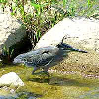 ![]() ヨシゴイ♀タイプ 出てきて、魚を捕って、引っ込んで、また出てきて、飛んだ・・。 |