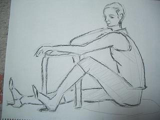 | 2006年12月22日(金) 前回に引き続きモデル写生会。勿論今日で仕上げないといけない。既に輪郭は大方出来ているので、どんどん陰を付けていくのだが、時間が経つほどにおかしくなってくるような・・・。部分的には位置がずれたまま、今の状態での陰をつけるわけで・・・。2時間はあっという間に過ぎてタイムアップ。ああ、この程度で今年も終わった。 |