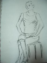 7月8月と1回ずつ用事があり、ついでに他の回もサボって結局2ヶ月お休みしてしまった。久しぶりの出席でなんか新鮮な感じ。いつもと変わらず既に皆は絵に向かっている。前回同じ絵を描いていた仲間はもう次の絵を描き上げている。私は新しく画用紙を買い、首無しのビーナスの裸体に挑戦。この教室は今年いっぱいで閉鎖なので、今から始めるのが最後のデッサン画となる。始めて約2年。意外と面白いと感じながら、結局エンジンがかからず、とうとう家では1枚も描くことなく、教室のみに終わりそう。さて、来年からはどうしようか・・・。油絵を始めようかな? (右の絵は6月時のモデル画。1回2時間きりで不完全のまま) |
