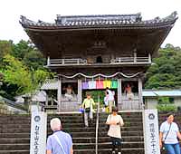 | 【第8番】普明寺 真光院 熊谷寺 四国霊場の中で最大級の仁王門を構える。弘法大師が修行をされていた時に、紀州の熊野権現が現れ、お告げにより5.5cmの金の観世音菩薩像を授けて虚空遥かに去った。大師はその場にお堂を建て、等身大の千手観音像を彫象し、胎内に金の尊象を納めて本尊とされた。 ![]() 仁王門は左右に極彩色の二体で構えている。 本堂 太師堂 |