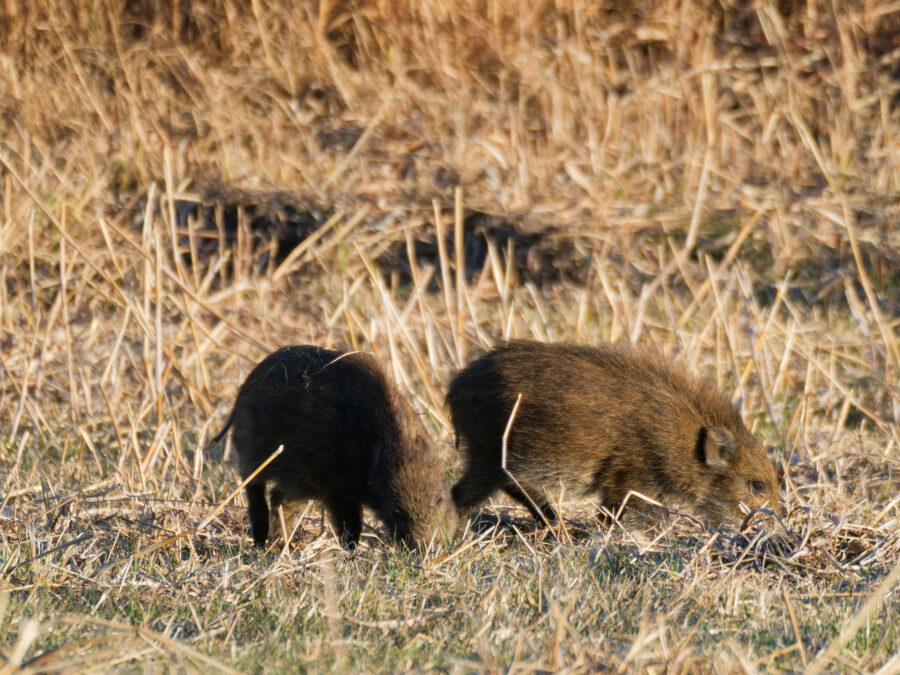 そろそろ15時になるので、チュウヒのとぶ場所へ移動すると。。子猪