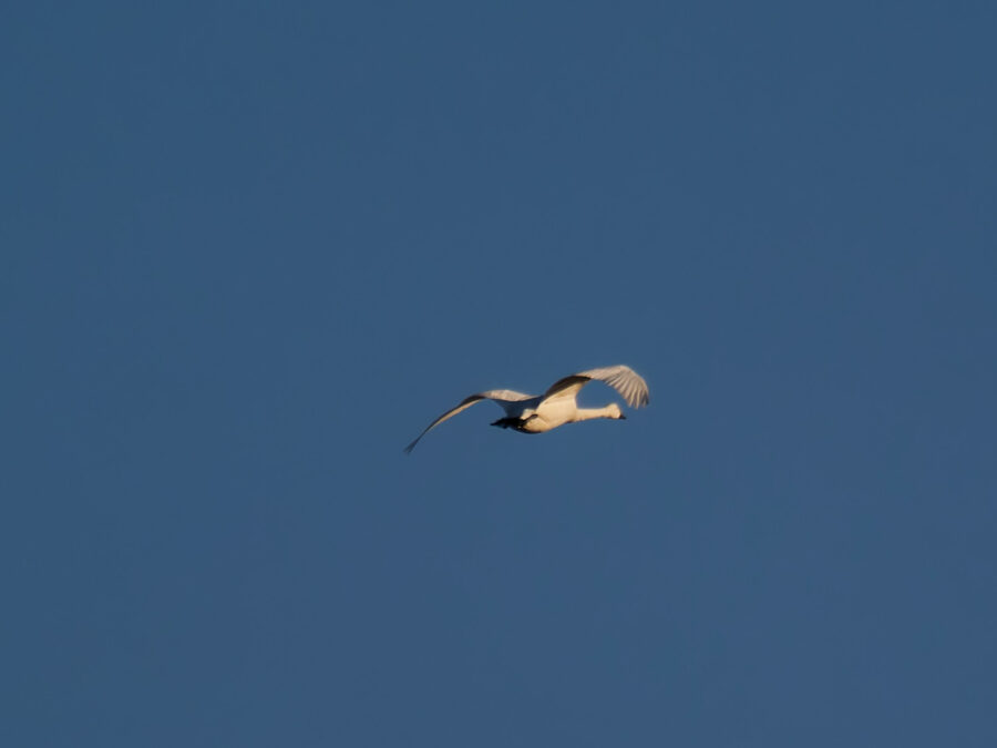 さらにチュウヒが来ないか待っていると遠くに白い奴。何ハクチョウかわからん。
