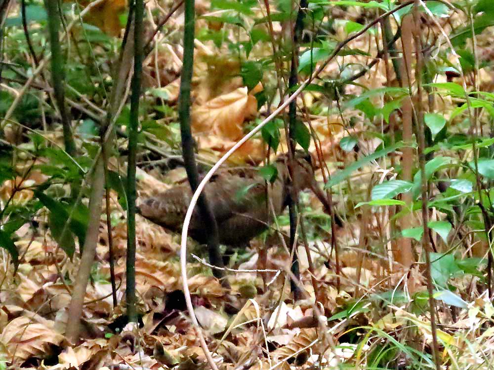 曲りなりにでも、やっとヤマシギが撮れた。おそらく昨年12月頃から出ていたらしい。が、私が知ったのはつい3週間ほど前だった。それから何度朝に夕にそぉーっと覗きに行っただろうか・・。鈍な私にはどうしても見つけられず、悶々としていた。今日も、昨日の画像整理に追われて、気分転換にふらりと緑地へ出向いたら鳥友さんに出会い、「今日もだめでしょうね」と苦笑いしながら、「ちょっと他所を一回りしてくるわ」と言い置いての数分後、「出てるよ!」との連絡に一目散に戻ると、すでに数人が集まって撮っていた。最初の2.3度シャッターを押したらもうどこにいるのかわからない。夕暮れの暗さだけでなく、自分の視力の弱さが歴然。ヤマシギ特有の隠れ技でひたすら草の中を這うように移動されるとお手上げだ。何とか鳥友さんのおかげで緑地のヤマシギの初撮りを得て、やっと溜飲が下がる思い。うん、ちょっと感触を得たから、これからは見つけ易くなるかな・・。今度こそ自分で被りなしのカッコいいヤマシギを撮ろうっと。