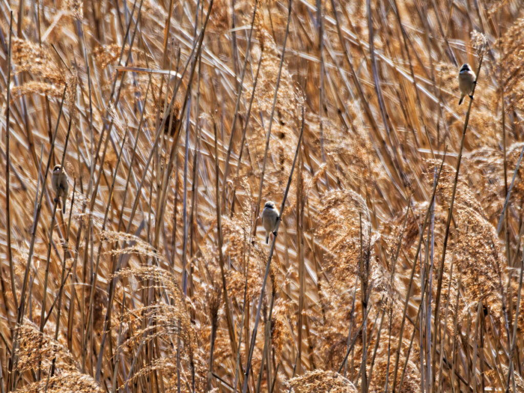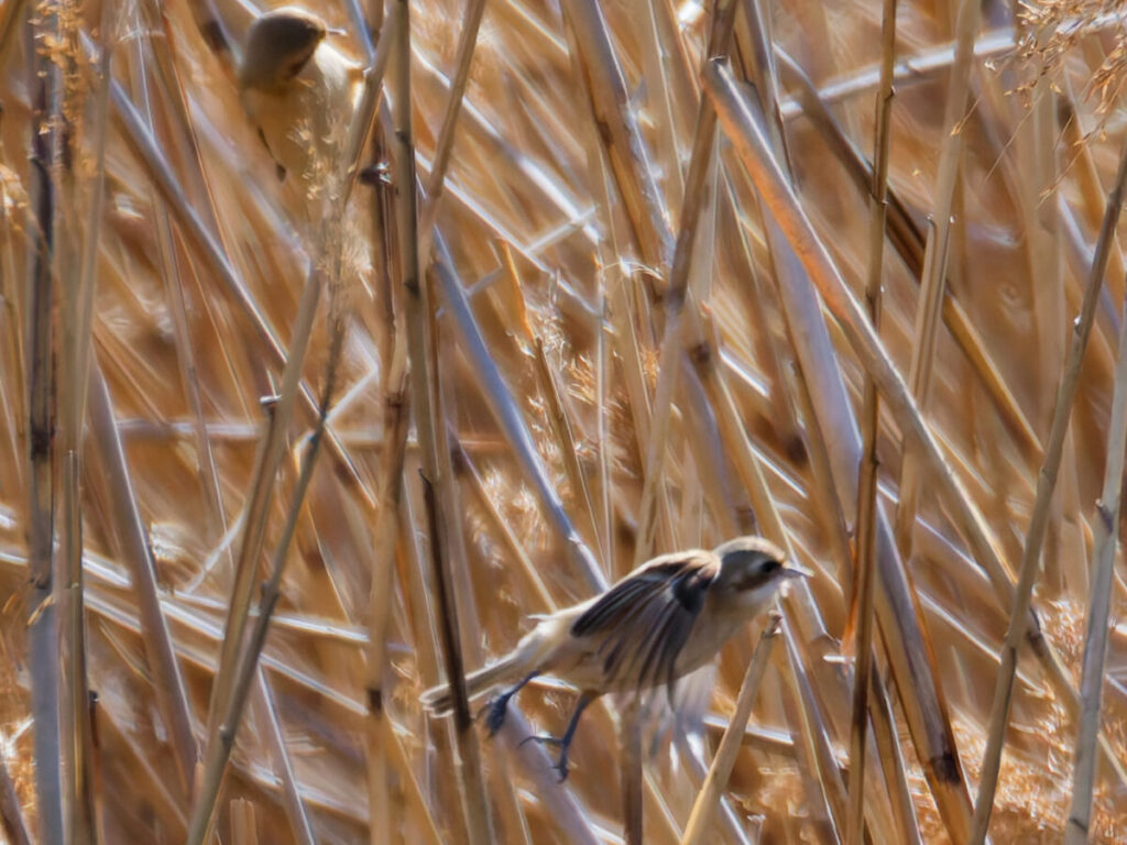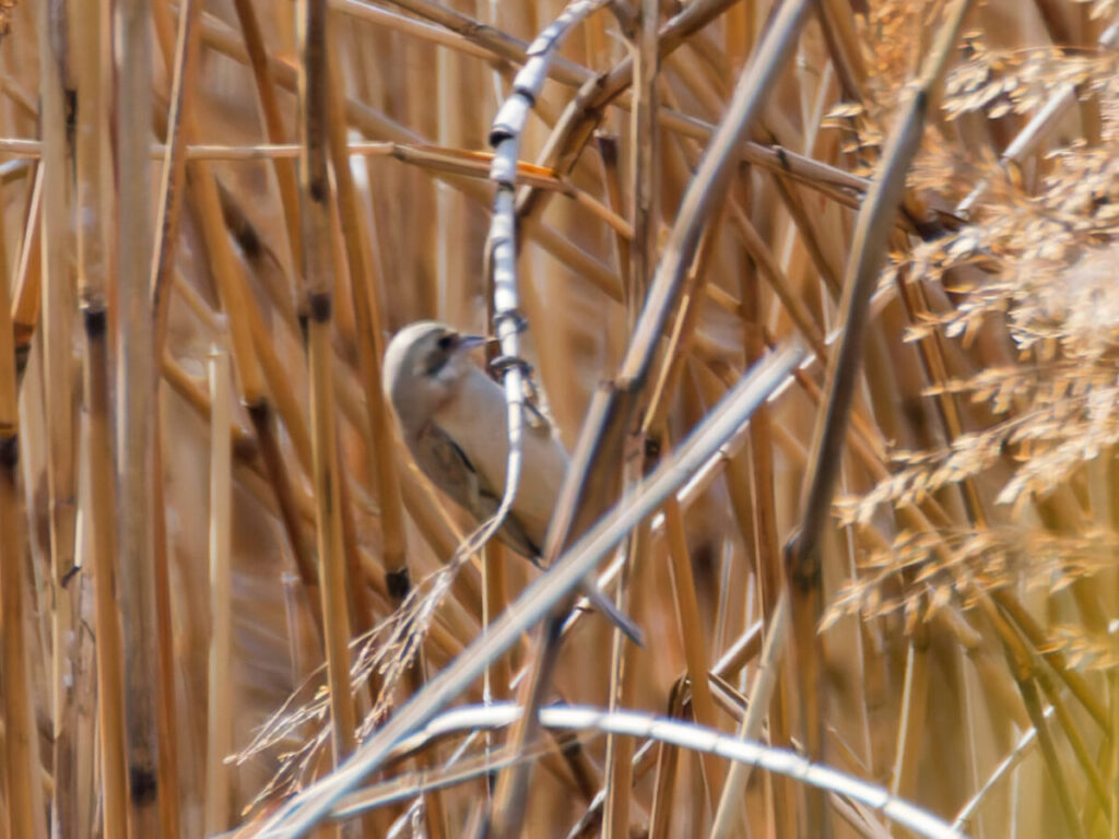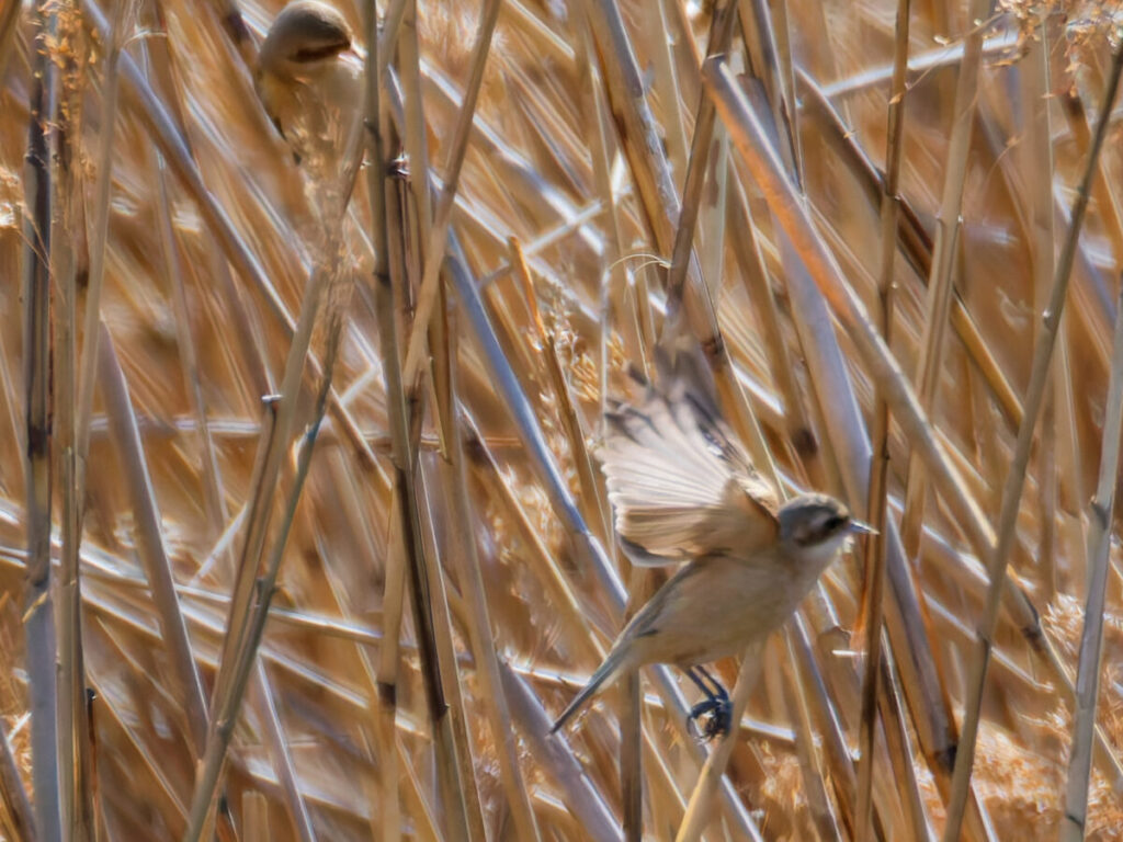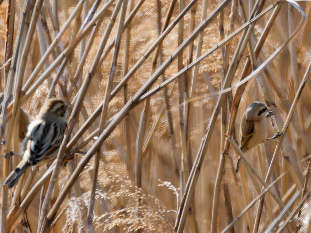 目の前の葦原にいるとの情報をもらい、早速見つけたツリスガラとオオジュリン