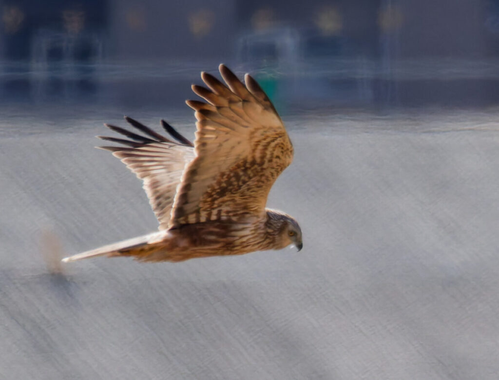 午後4時頃に出たチュウヒ♀?(右翼の先の羽が抜けている。これは午前中に出た個体と明らかに異なる)