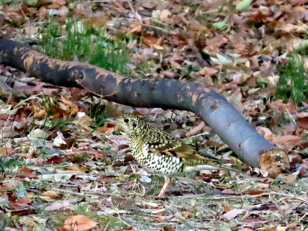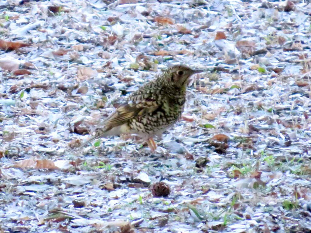 用事が片付いて、午後3時半頃いつものコースで弧ケ池へ行こうとしたら、偶然トラツグミを見つけた。傍にシロハラが居た。並ぶとトラツグミの方がかなり大きいなぁ…。