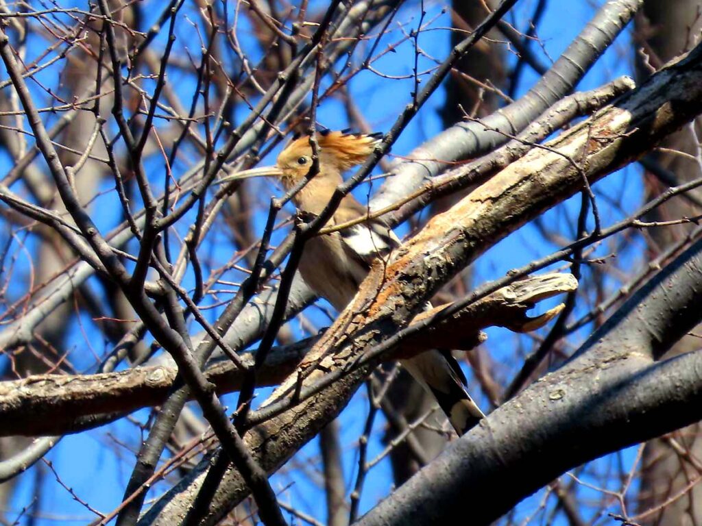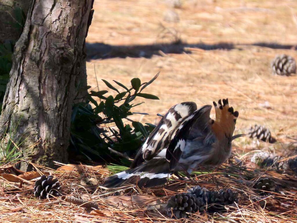 あ、冠羽を逆立てて、背羽を広げた。皆この瞬間を待っているのだが、瞬間なので見損なうことが多いのだ。