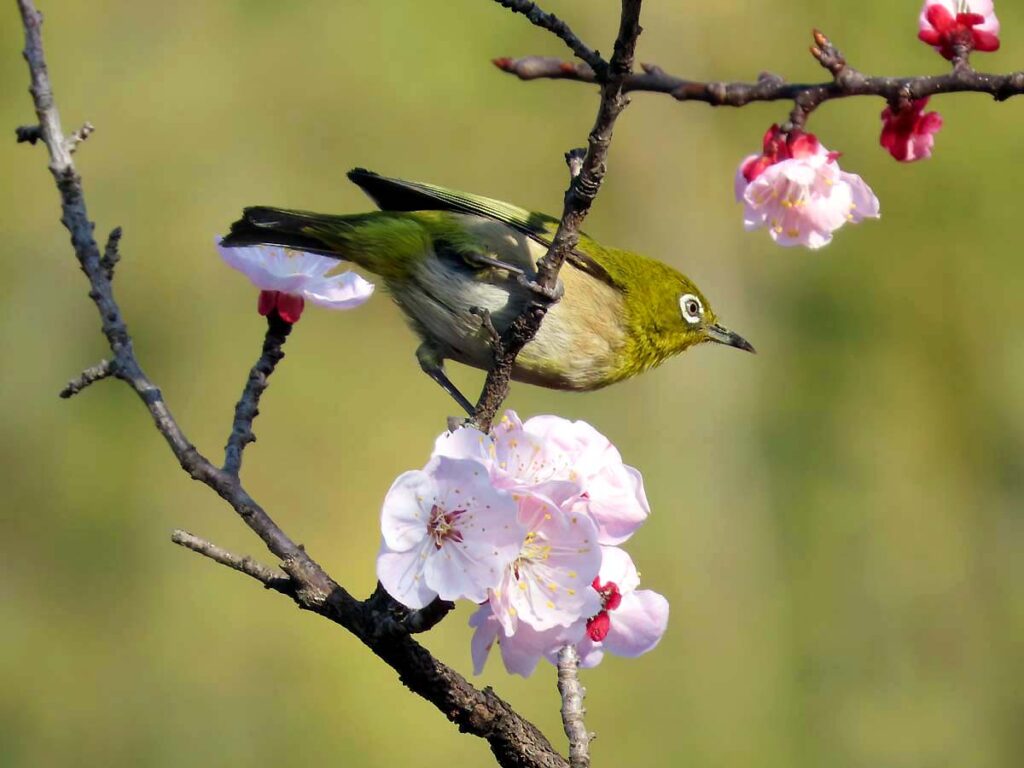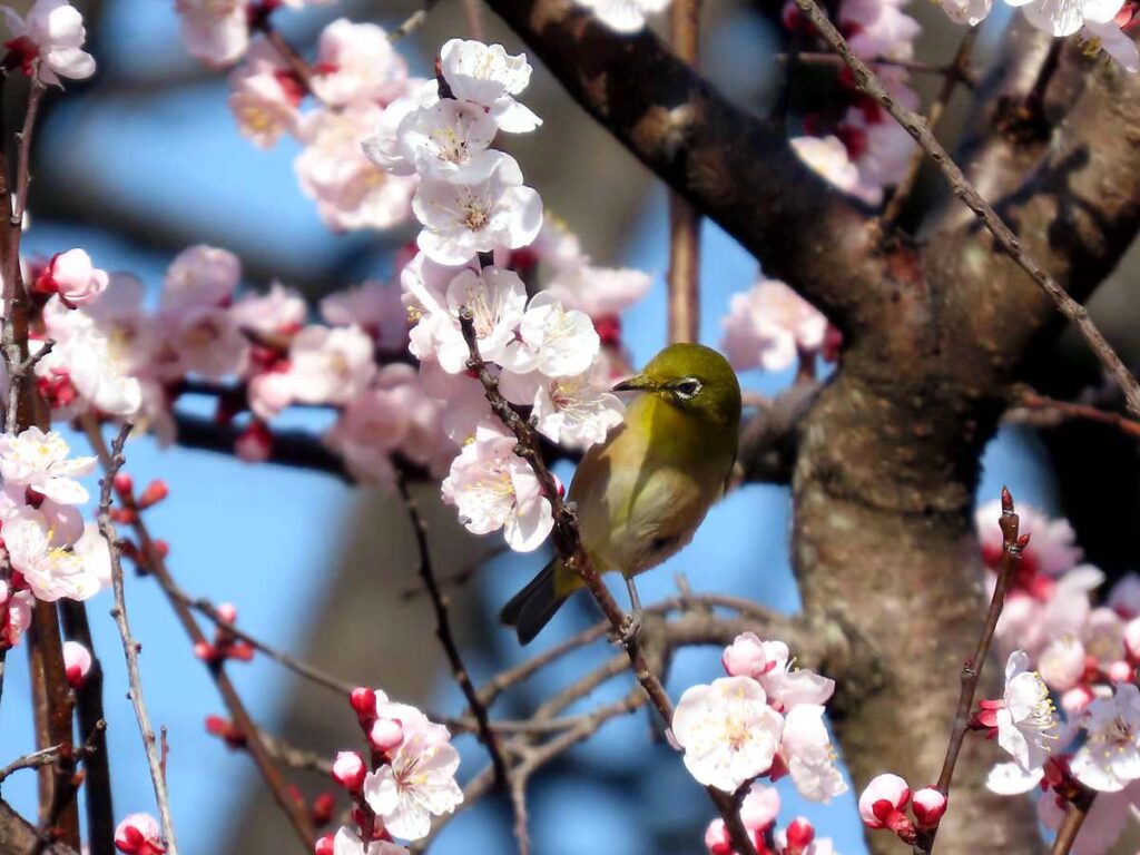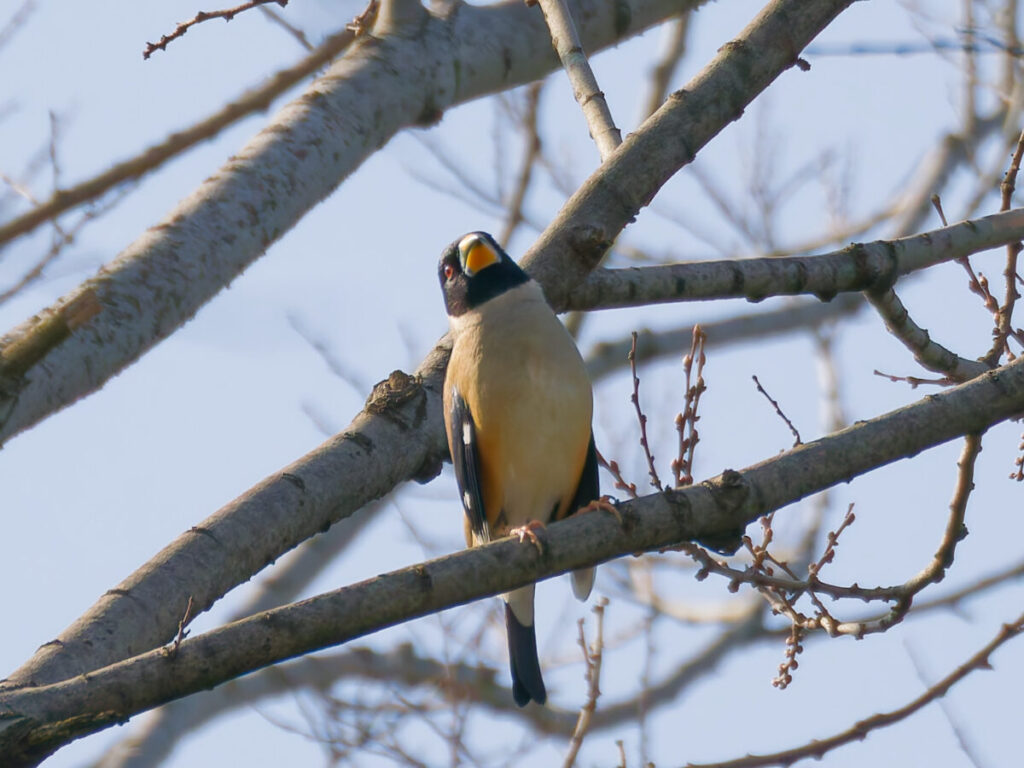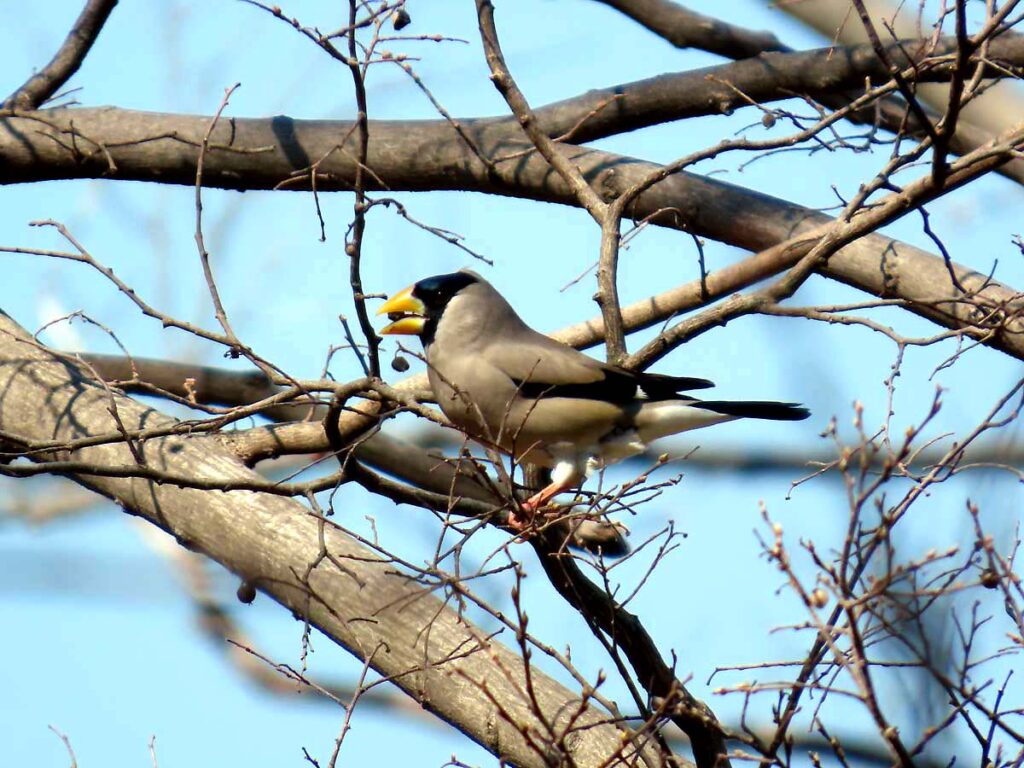 4日前に聞いた黒マスクなんてあだ名?がついているらしい…コイカル♂、手強いらしいので躊躇していたが、やっと出張から帰ってきた息子にはもってこいの話なので、さっそくGO!とはいえ、その気になったのは出張先で撮った中禅寺湖周辺の写真を一通り見せてもらった後で、現地に着いたのは12時過ぎ。当然コイカルの♂は出なかった。「やっぱり、朝早くなんだね…」と納得して、先に梅林で撮ったニシオジロビタキが又カキツバタ園に戻っていたのでまた撮って、、今日は帰った。