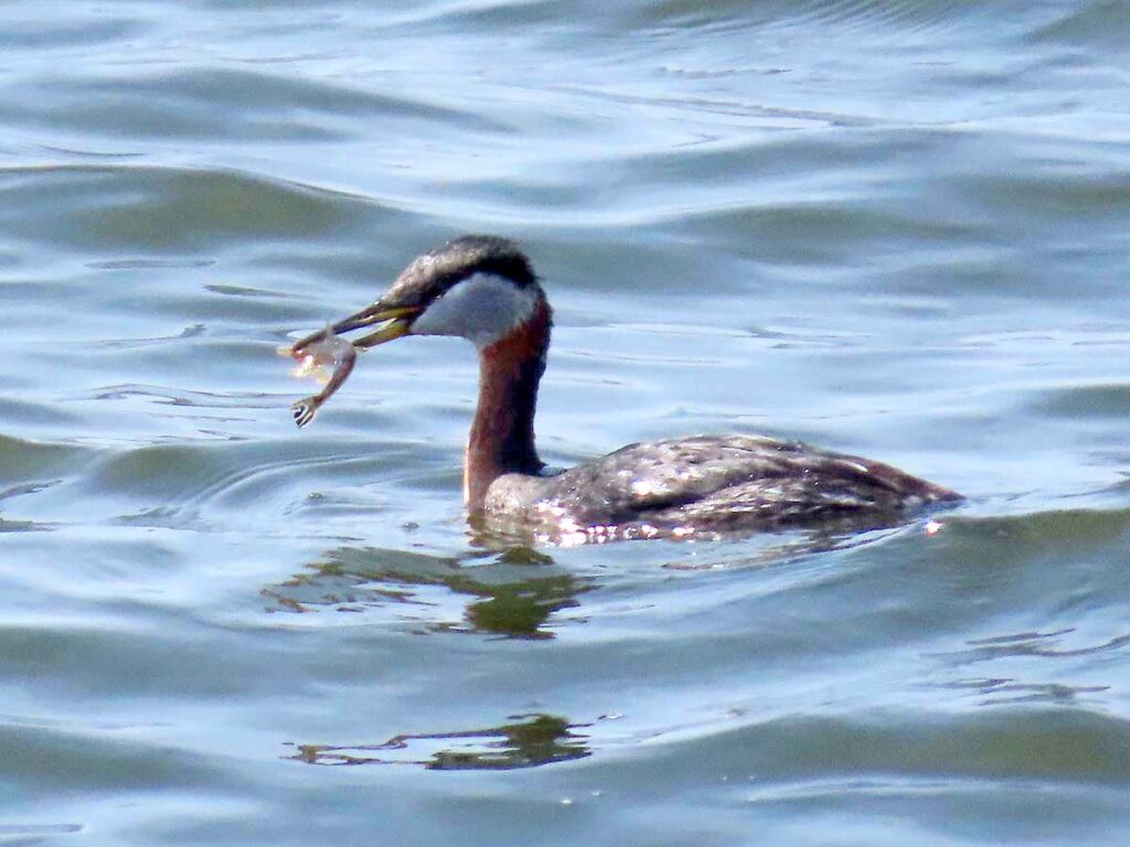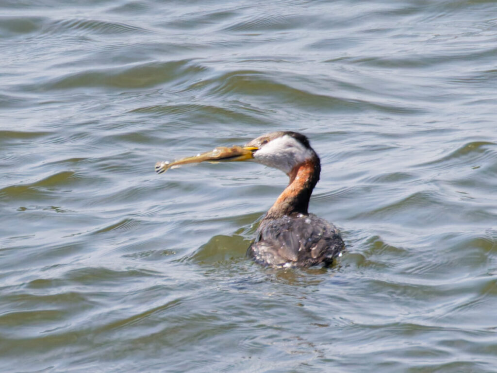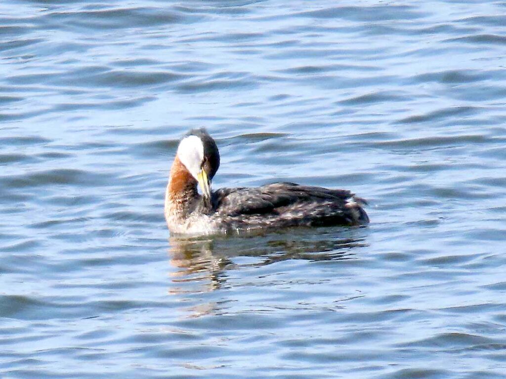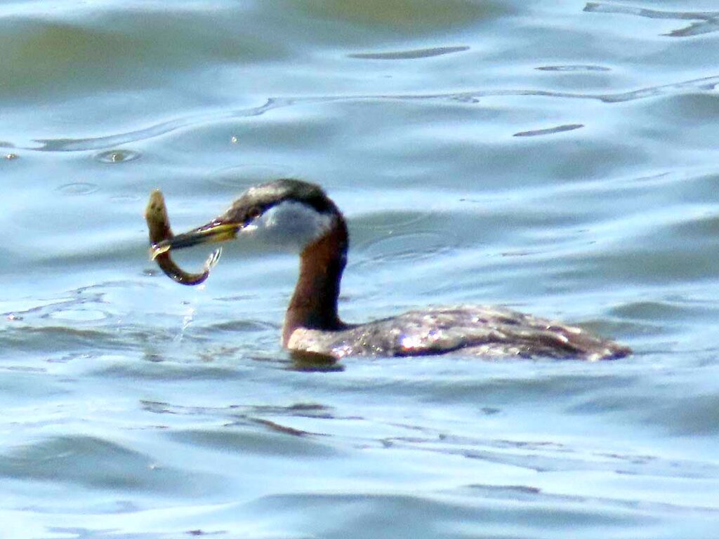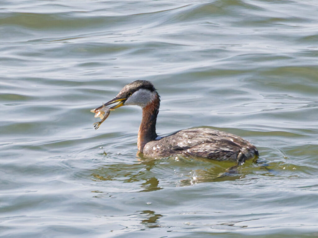 アカエリカイツブリ 夏羽 今日の本命。長い首はまさに赤襟だ。