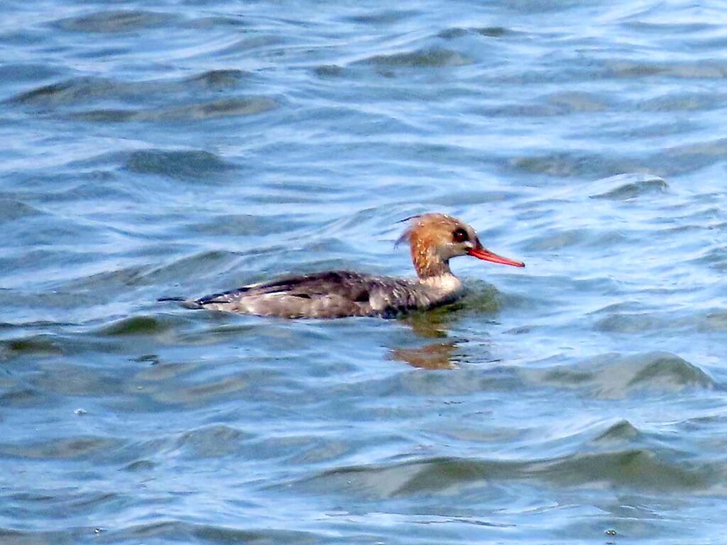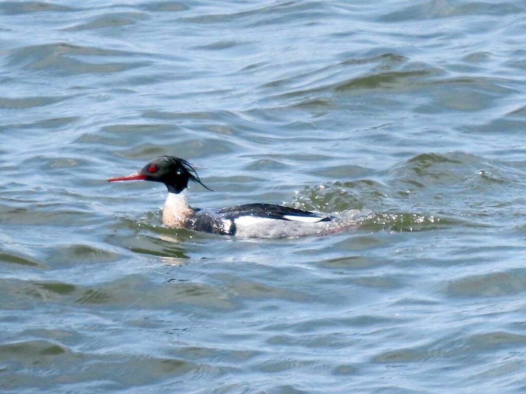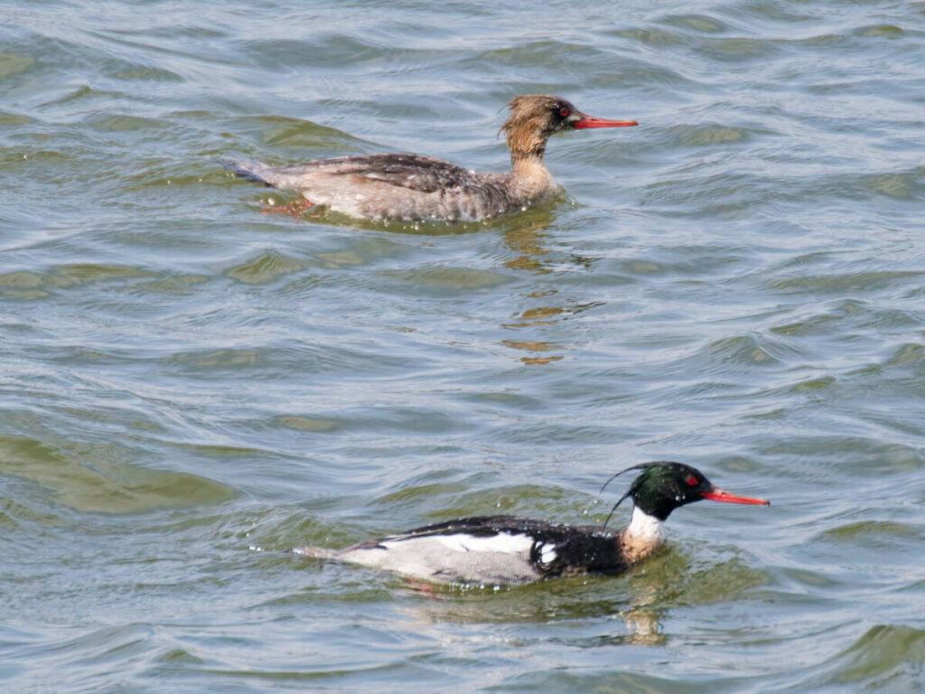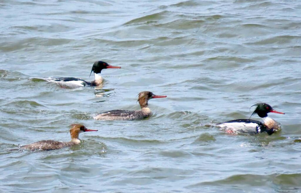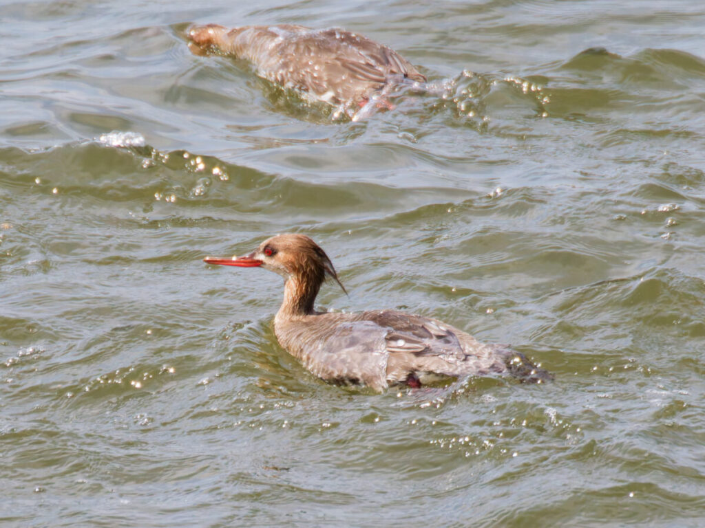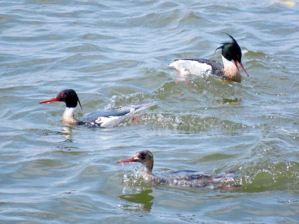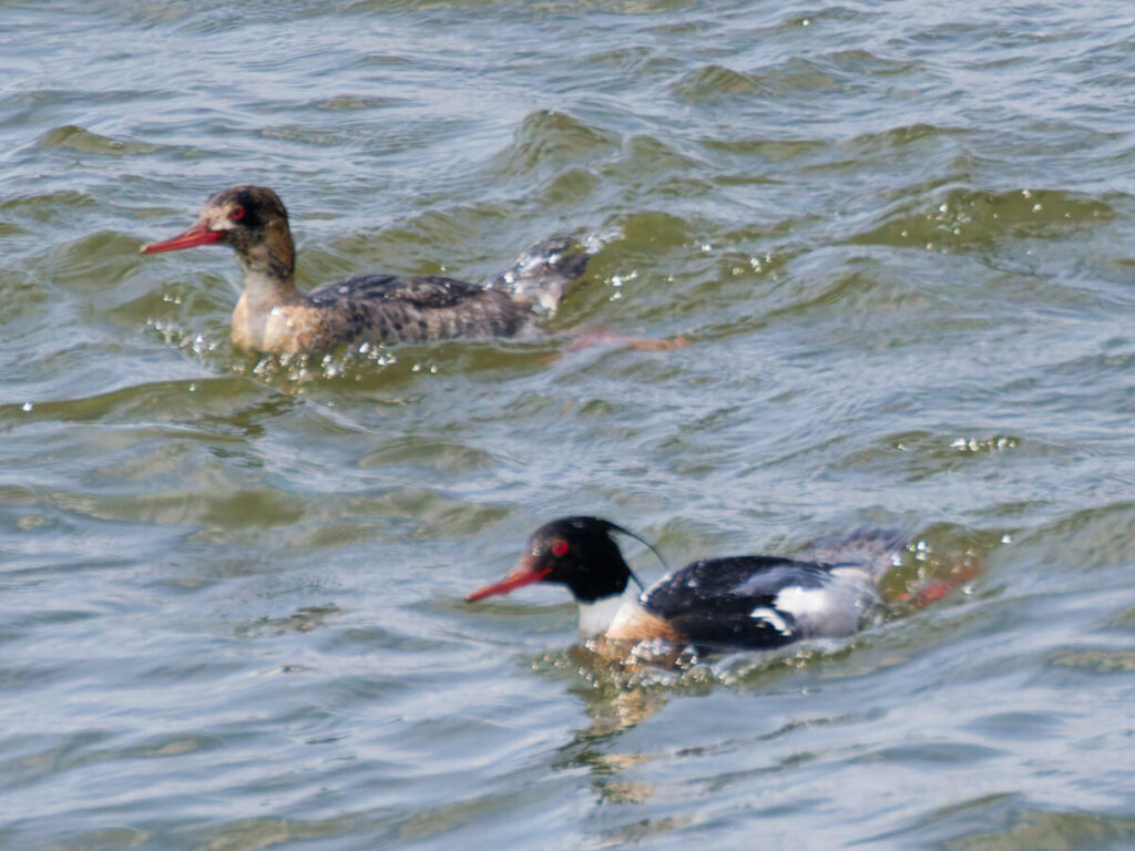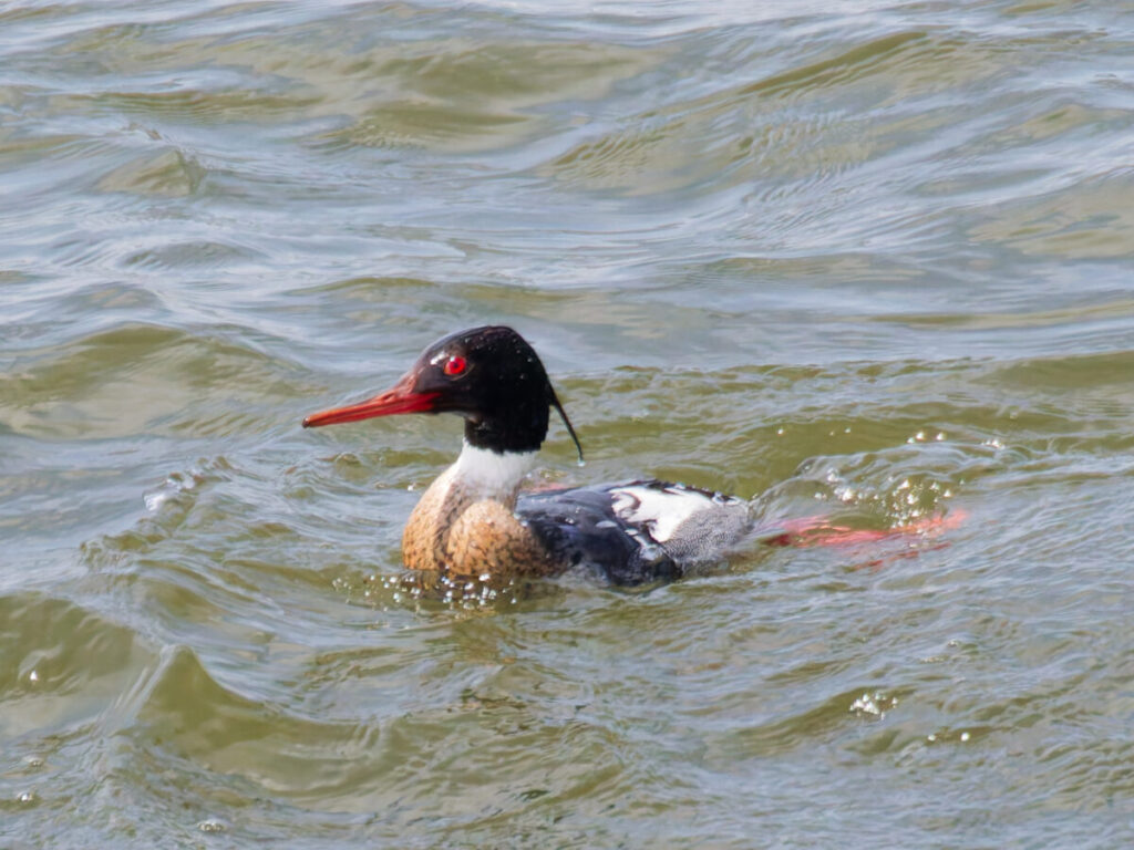 放水完了を見届ける余裕もなく、ウミアイサが群れで近くに来た