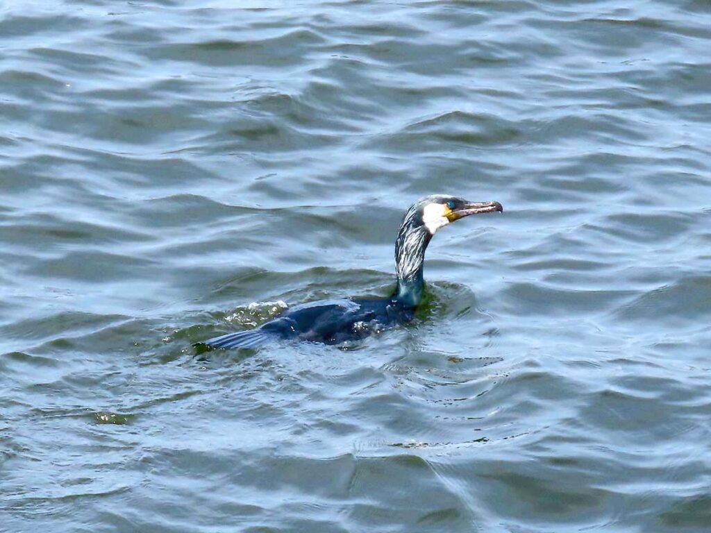 @鶴 今回の一番目はウミウ(海鵜)。遠い沖合で見たことはあるが、近くではほゞ初見、ラッキー!