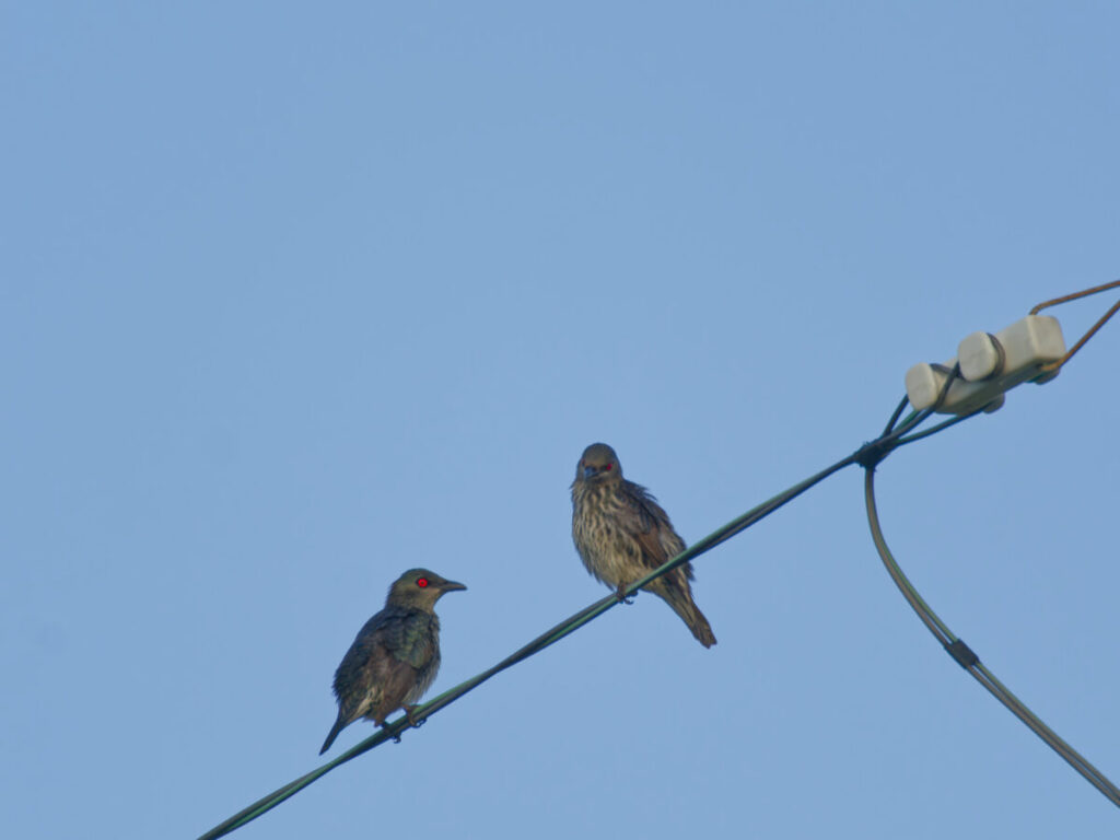 ミドリカラスモドキ 8羽居たが目の異様な赤さが独特。 後刻ガイドの話で珍鳥と分かった。