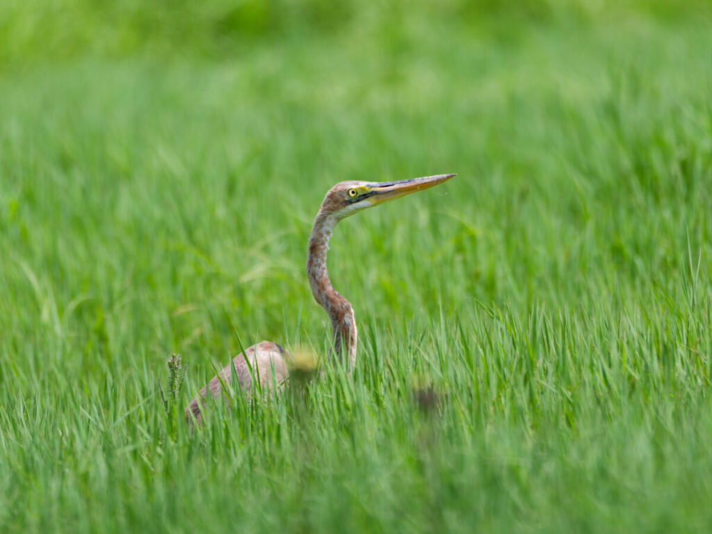 農耕地の間を移動中にムラサキサギ、大阪では撮れなかったけど簡単に見つけられた