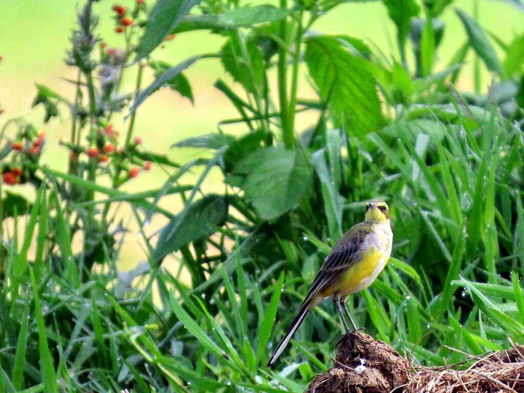 ガイドに車で案内されて早速キマユツメナガセキレイ