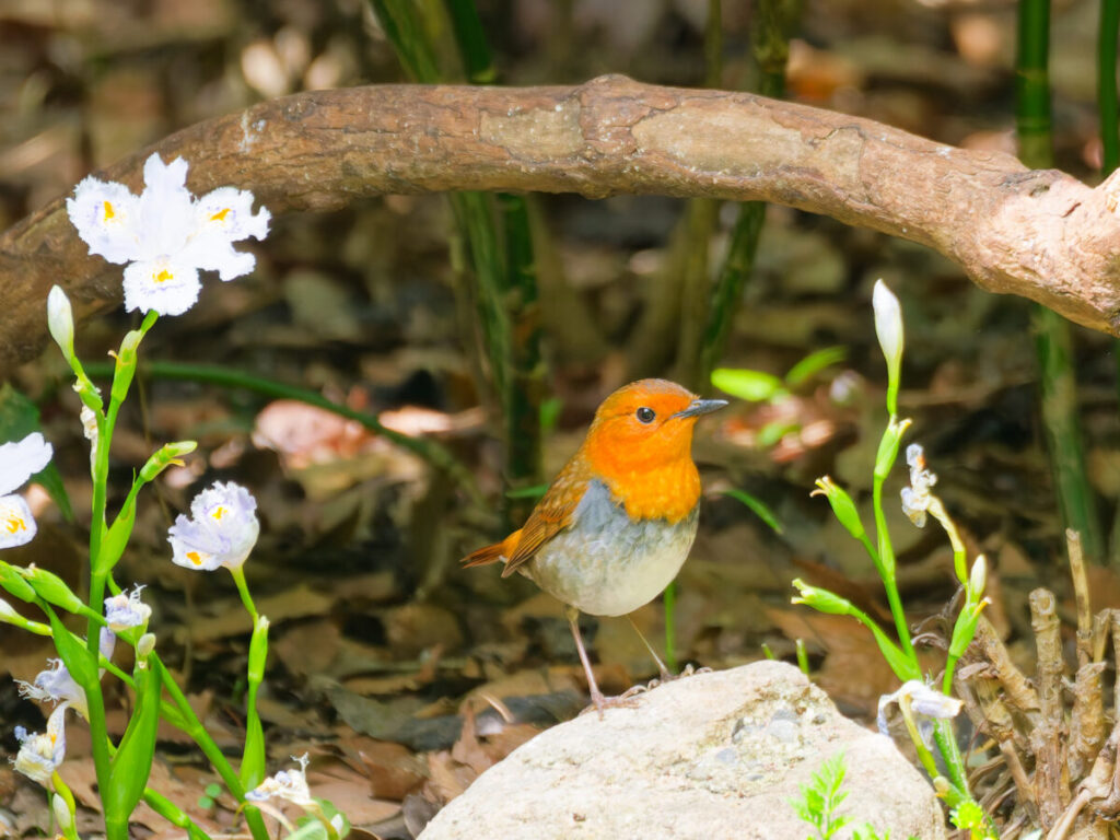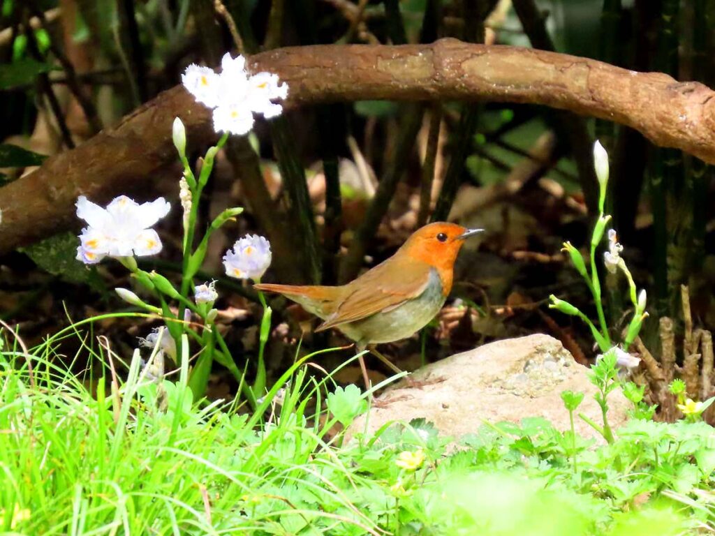 本命のコマドリは市民の森のポイントで、横の花が出来過ぎ