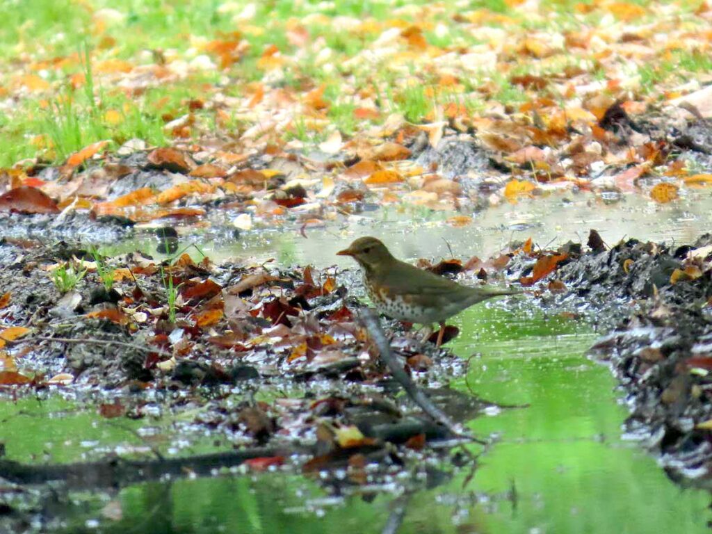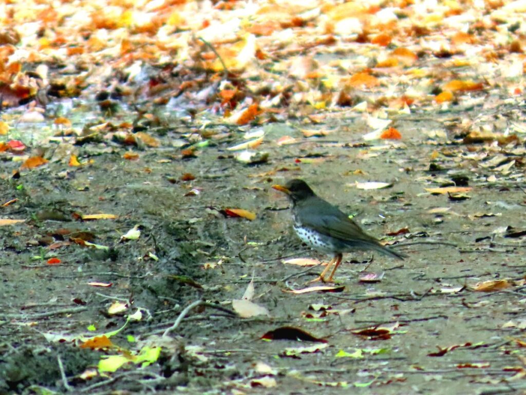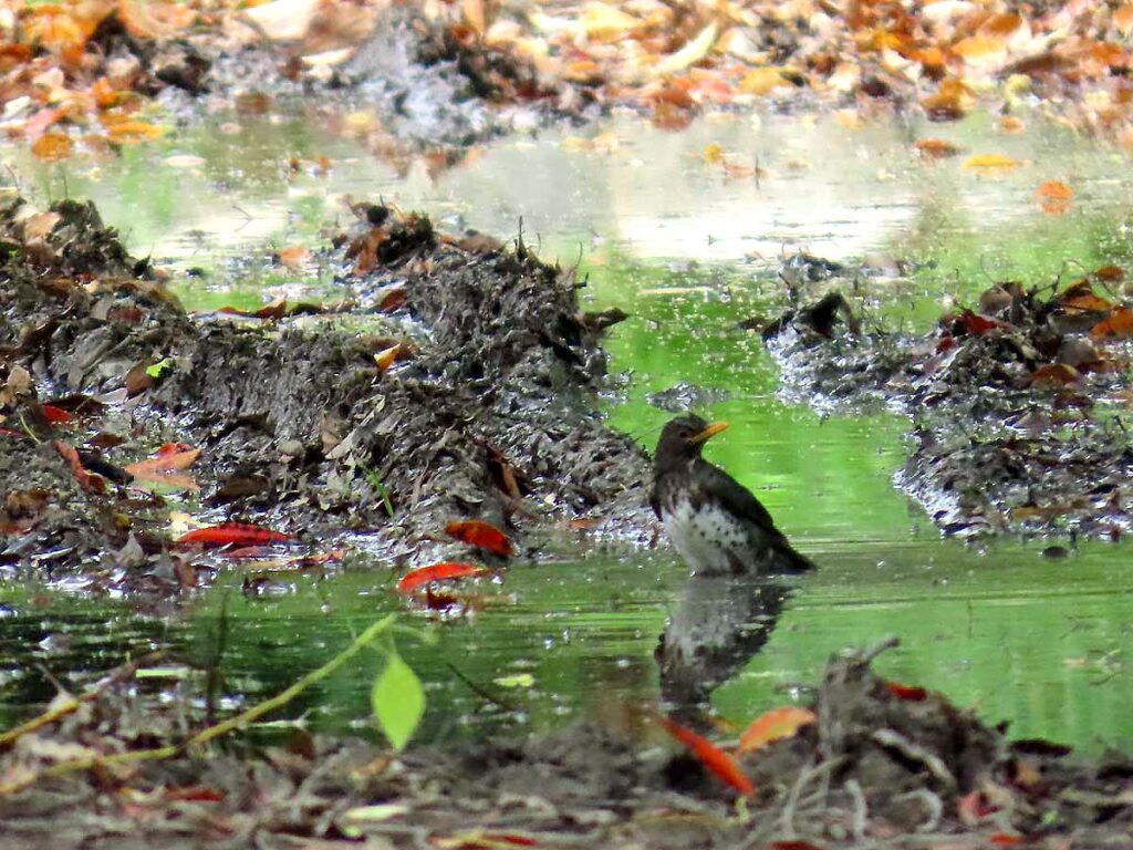 クロツグミ♂ 豊国神社裏の水たまりに出ていた。残念ながら場所が悪かった…。