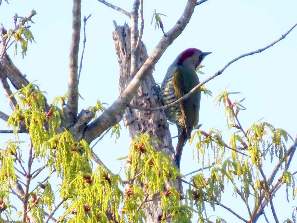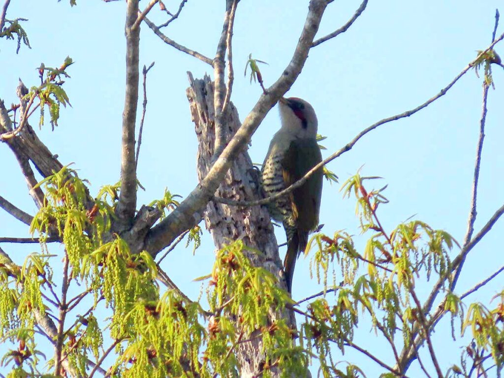 @虎さんが呼ぶので行ってみたら、アオゲラ♂が止まっていた。これだけでも会えて良かった。