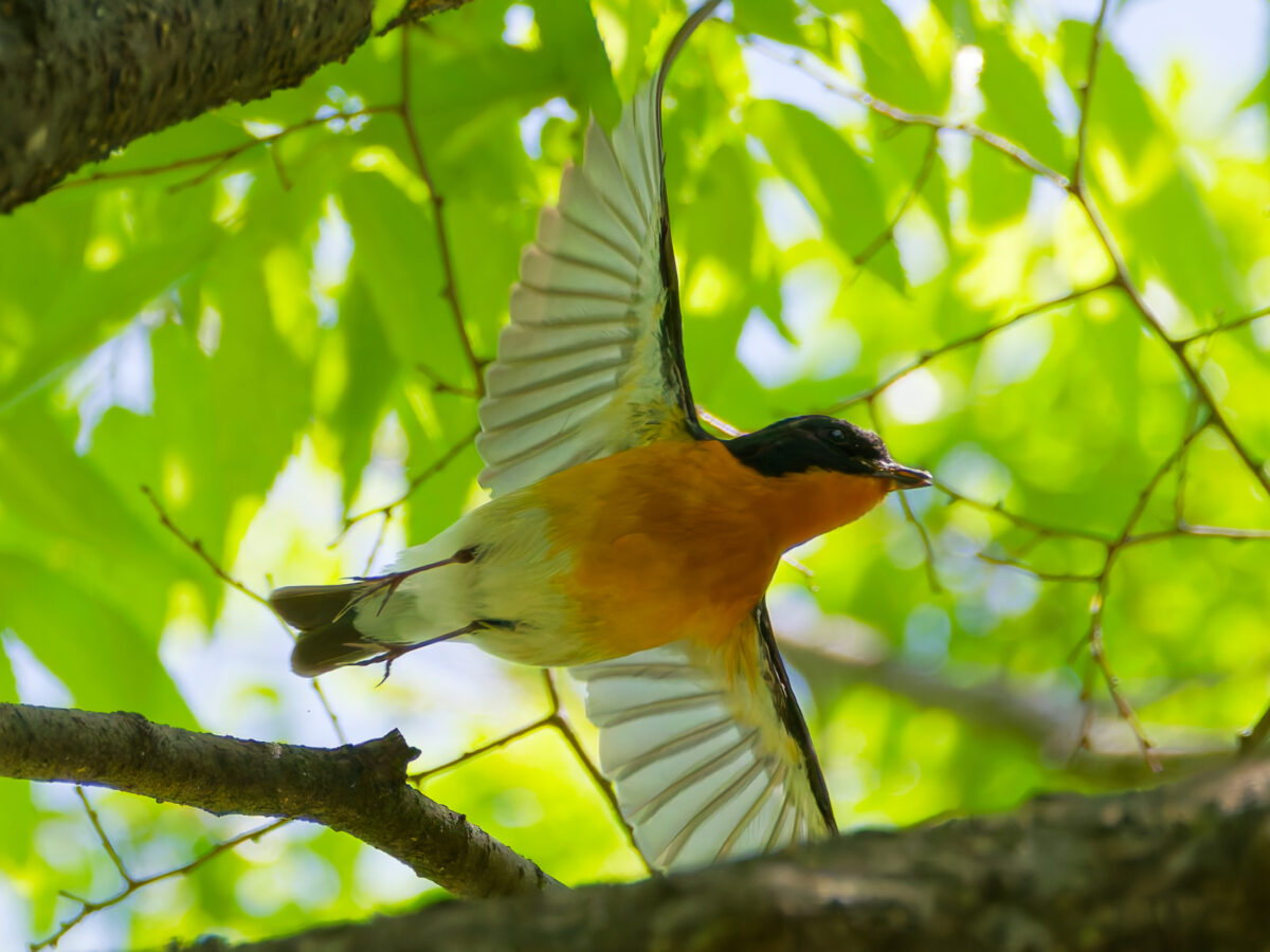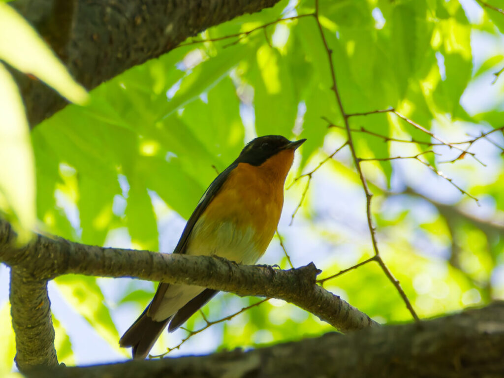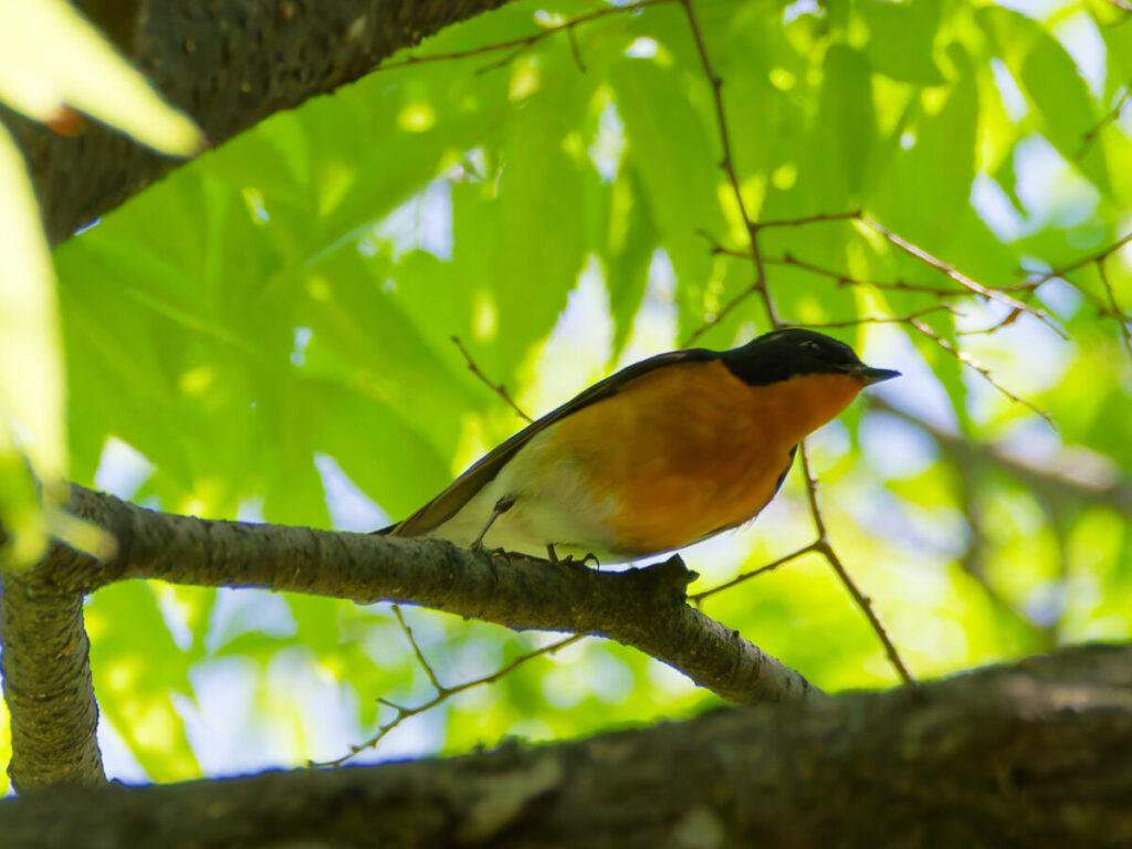 ムギマキ成鳥♂ 妙にオレンジ色のキビタキだなぁと思って撮ったけど、あとで鶴さんに聞いたらムギマキらしい存在を忘れてました。。