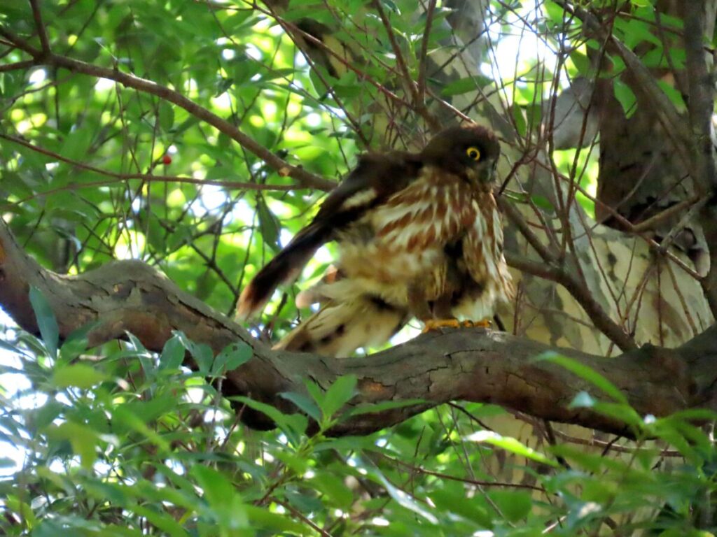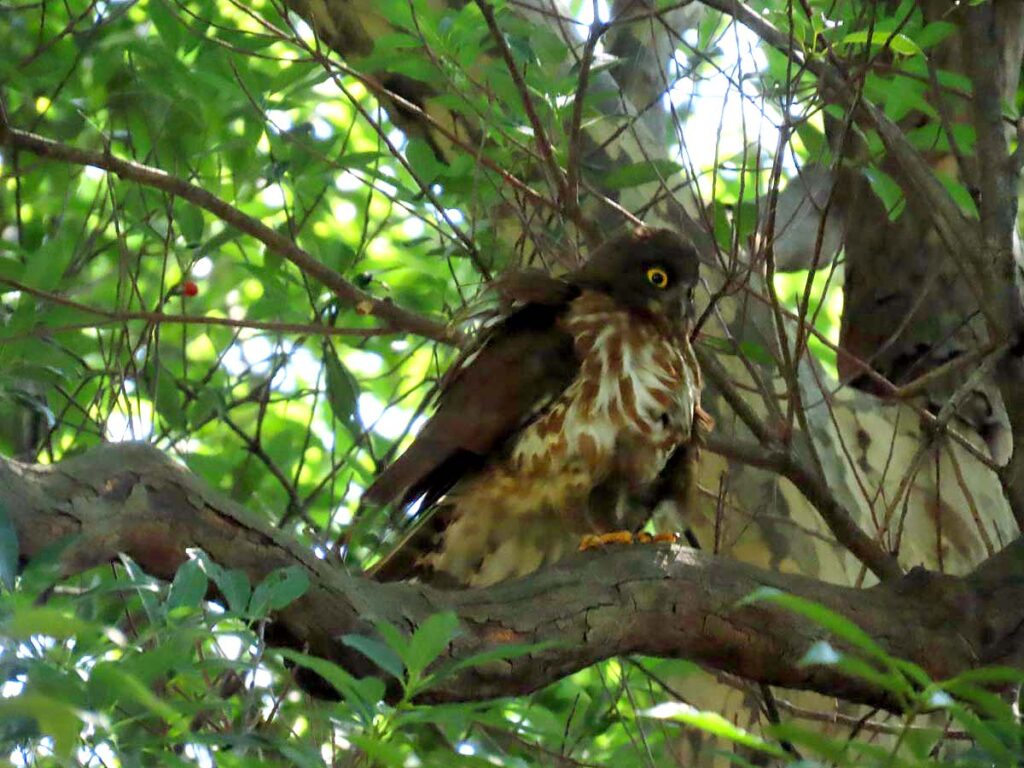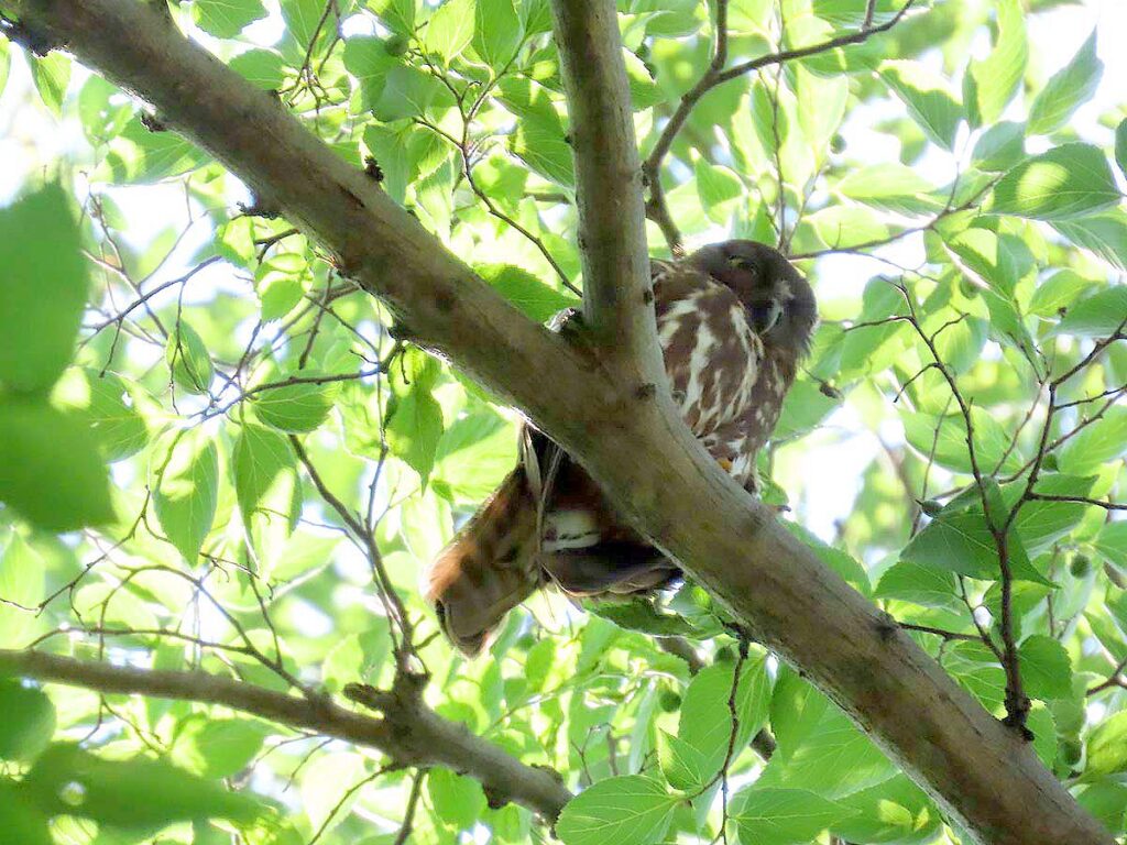 こちらはお母さんアオバズク 昨日巣から出たそうだ。お疲れのご様子…。