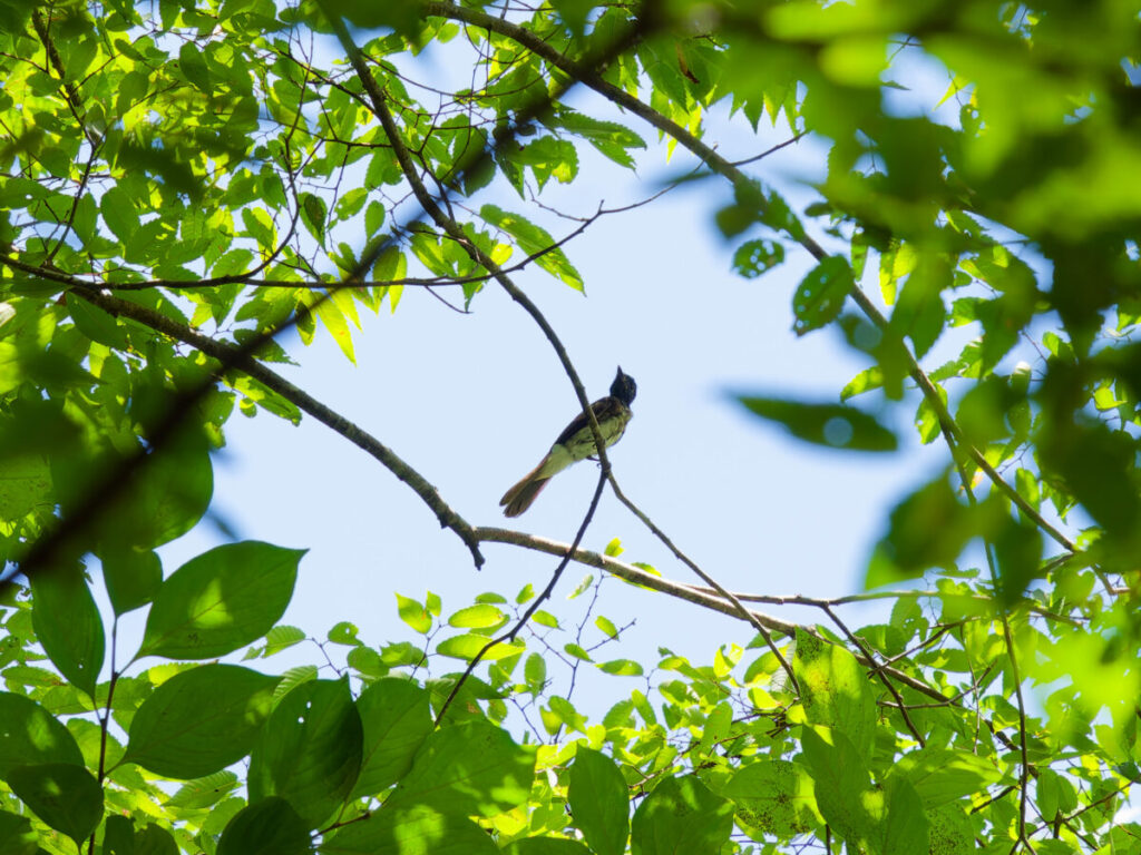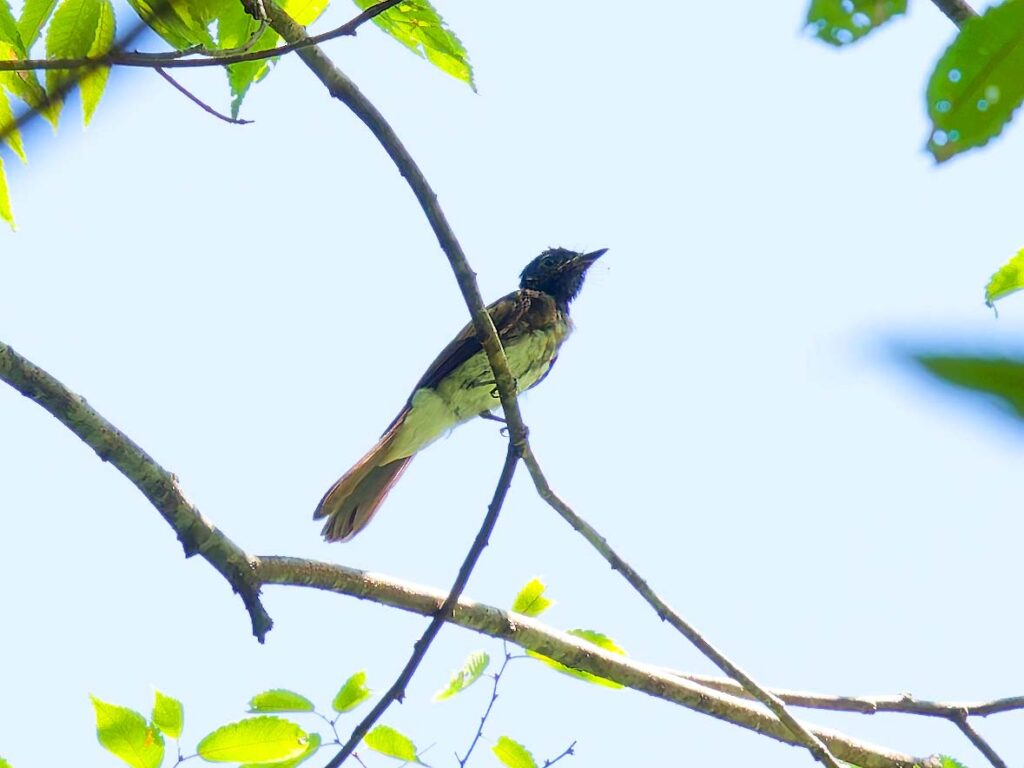 到着してすぐ,新カメラでの第1号画像はサンコウチョウの♀タイプ、雛かな?丁度空抜けの中にいた。