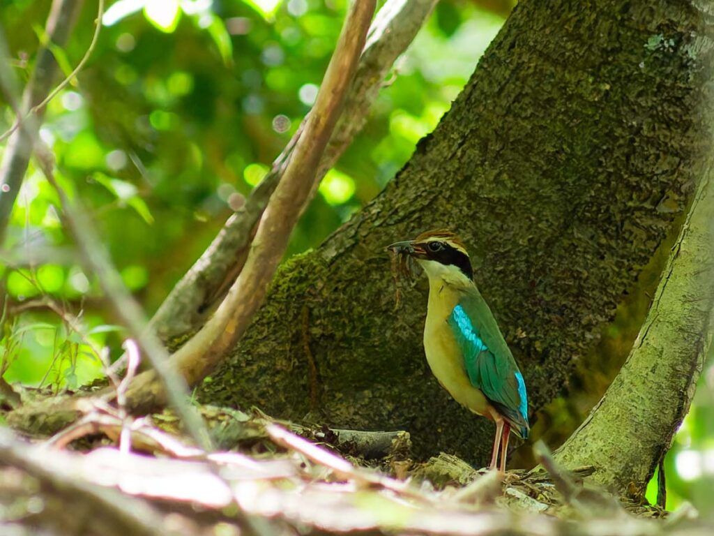 念願のヤイロチョウ、シリーズ中に@虎はそれなりに撮れていたが、@鶴は無惨な結果で終わった。何よりせっかくのチャンスを生かしきれず、個人の技量だけでなく、やはり使うカメラに原因があると思い至った。先般思い切って一眼のカメラとレンズを買ったので、もう一度ヤイロチョウにチャレンジしたいと思いだしていた。@虎も最後は不発に終わり、時期としてはちょうど一番撮り易くなっている頃だと思っていた矢先、偶然インスタで別人のヤイロチョウを見て「出てるよ~」と連絡をくれた鳥友さんと一緒に、今度こそ最後のチャレンジとなった。
