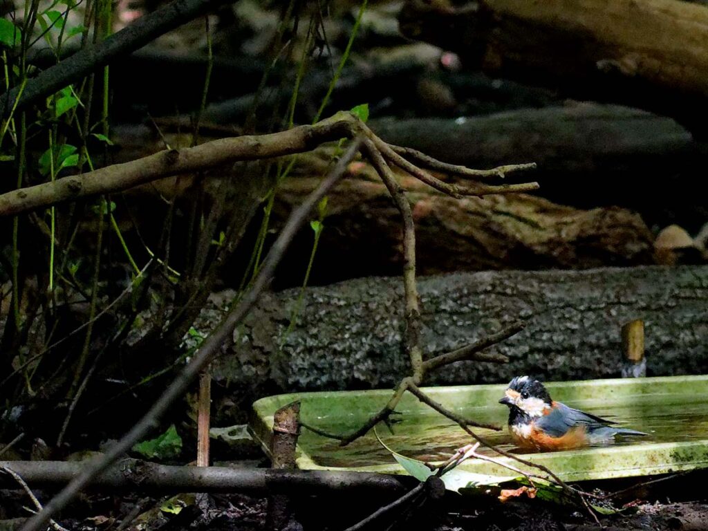 ヤマガラ 水浴びしていた。他にメジロ・シジュウカラも多かった。
