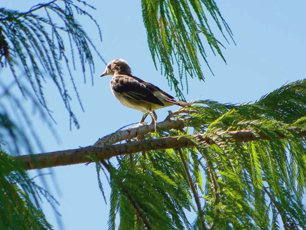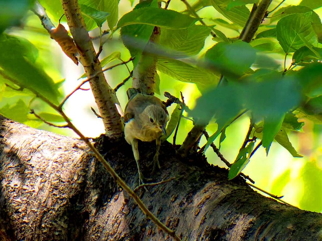 9月に入った。日の入りが早くなったかなと思うだけで一向に暑さは衰えない。チゴモズが一段落してさて、と思っているところへここ数年あまり縁がなかったコムクドリの水浴びのニュース。鶴見緑地も昨秋のムギマキ以来だ。到着は㏂10:30過ぎ。すでに2.3人が流れの傍で待機中。丁度顔見知りの鳥友さんに出会い心強い。昨日は11:30過ぎからお昼にかけてバッチリ出たそうだ。が、待てども待てども出てくるのは唯のムクドリばかり。コムクドリは時々流れの上の木に止まってタイミングを待っているが、降りてこない。しかも♀しか居ないような…。勿論♀でも嬉しいが、どうにもきれいに撮れない。日差しはたっぷり、しかも木陰で涼しく、時折風が通り抜ける、申し分ないSituationなのだが、撮れる画像はなんとも見にくくて暗い。カメラの設定が悪いのかな?慣れぬカメラでついに午後3時前、皆さん帰られて一人4時まで頑張ったが、ついに拉致が明かぬまま退散。帰り道、失意のまま情報を下さった鳥友さんに失敗の報告をし、帰宅して画像をパソコンに入れてバタンキュー。翌日取りあえずノイズを除去したら、あれ?そこそこ写ってるし、♂も居るじゃん…。???