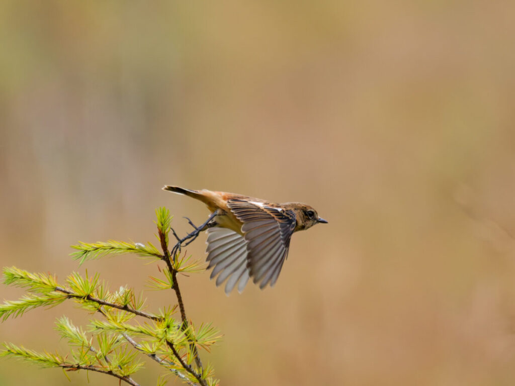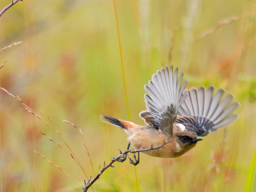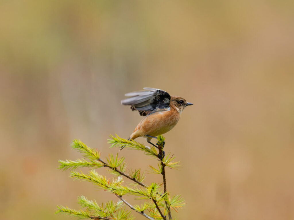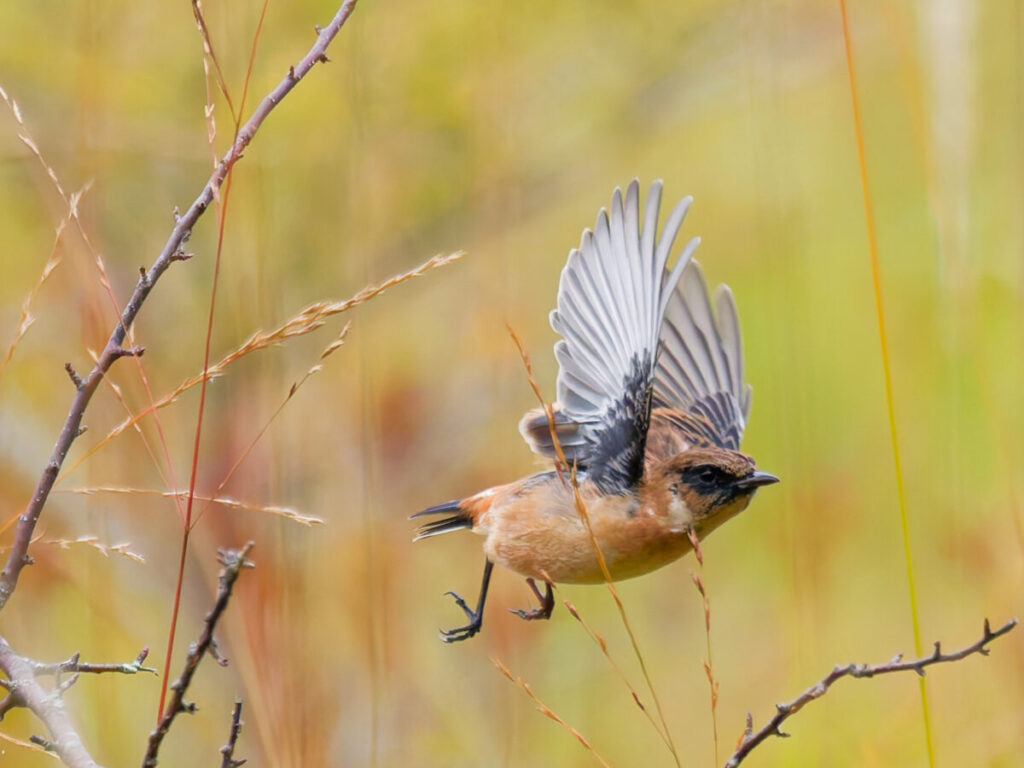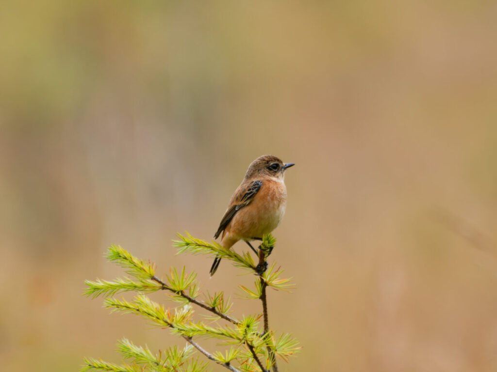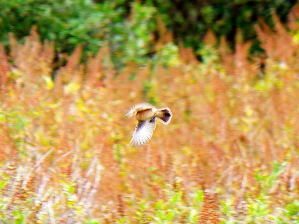展望台から見える場所にノビタキをみつけた。遠かったのでテレコンつける。