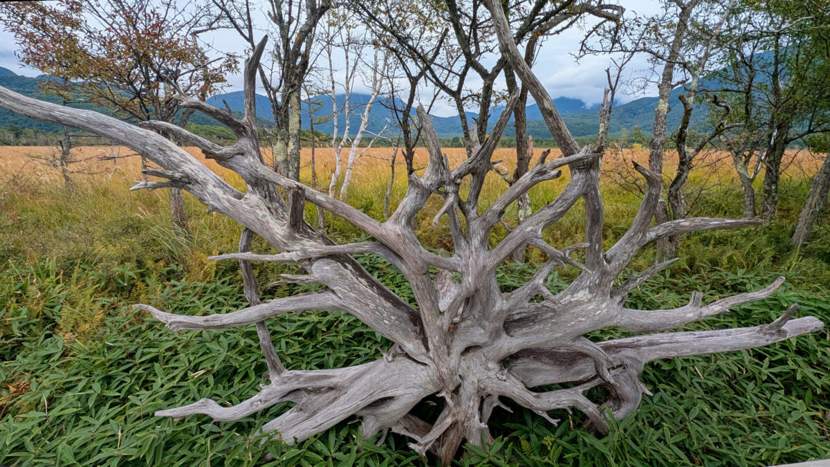 戦場ヶ原でちょっと有名な倒木の根っこ。