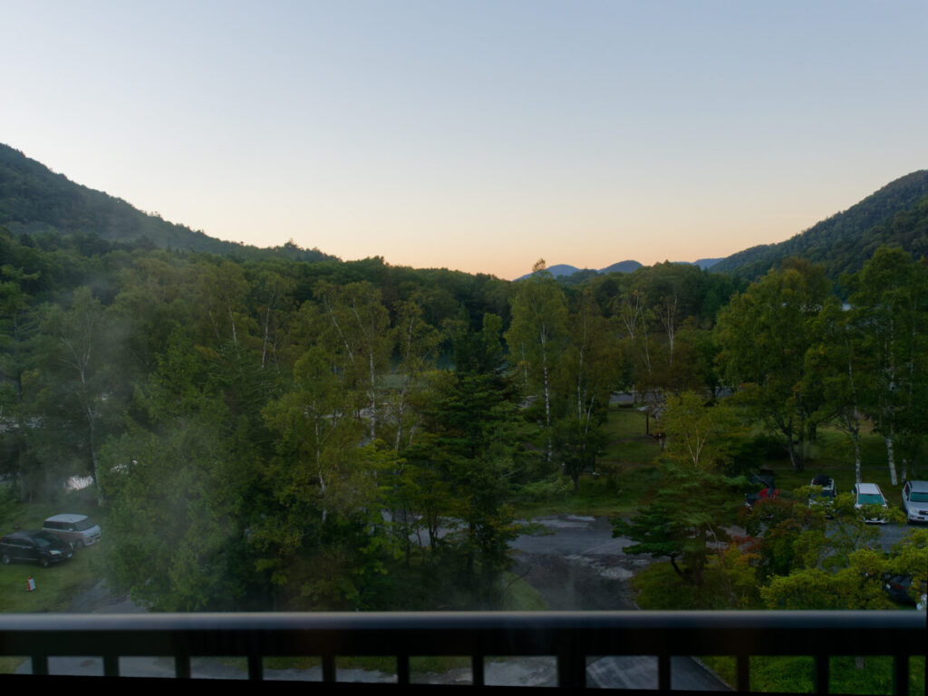 早朝5時、うっすらと空が明るくなっていた。ホテルの窓から。