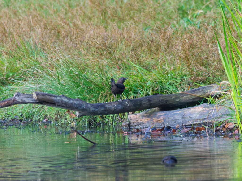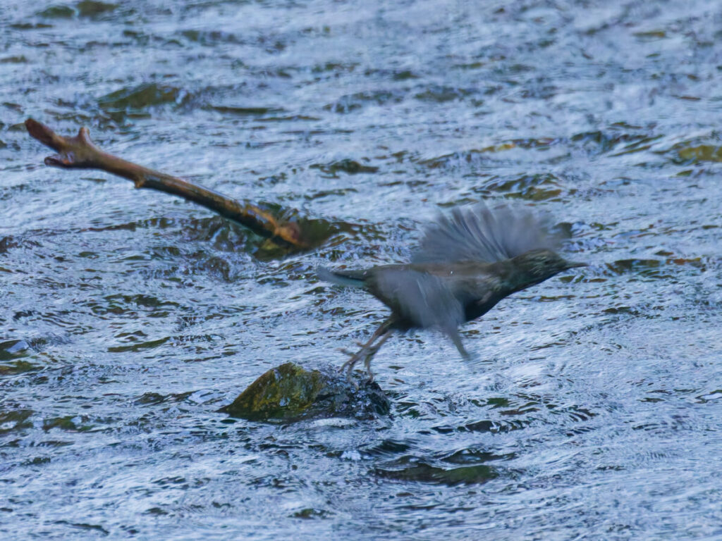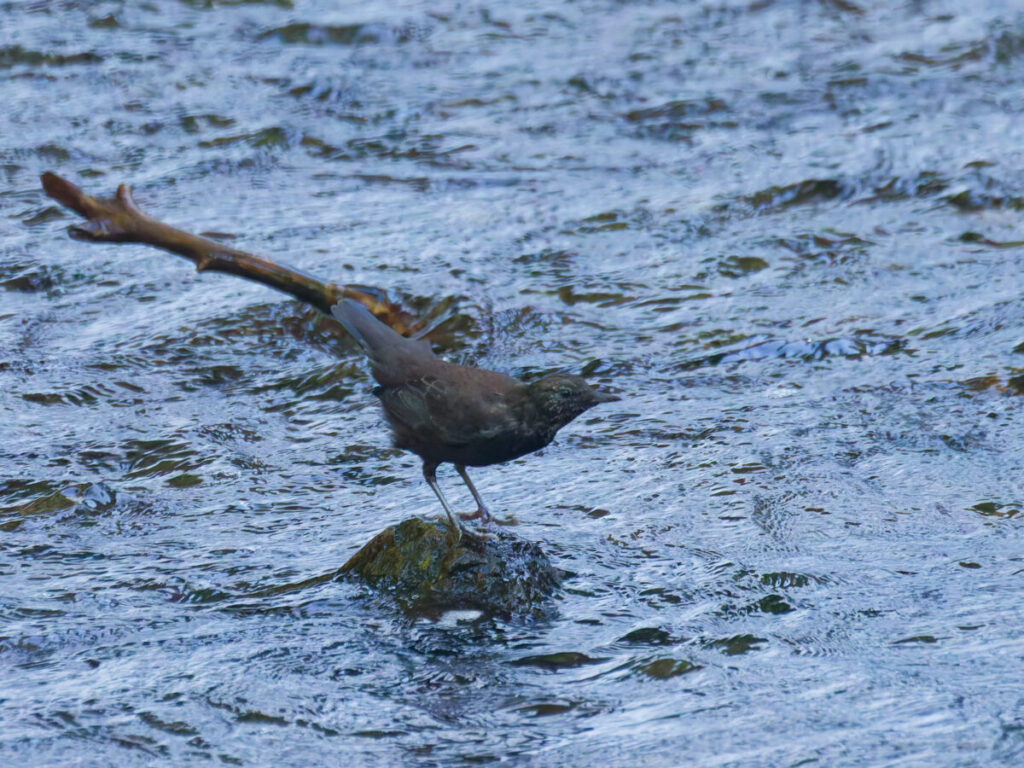 カワガラス2羽居たが、顔・頭部に斑点があるこの子は、今年生まれの若鳥かな?