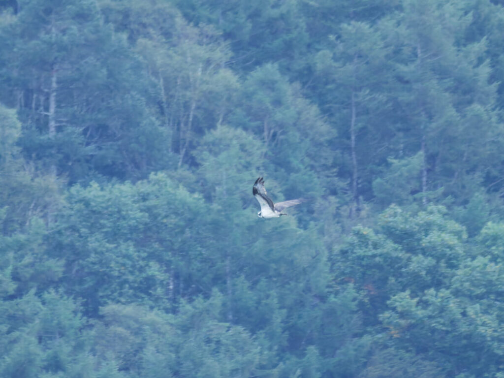 遠くの湖面の上をミサゴが飛んでいた。