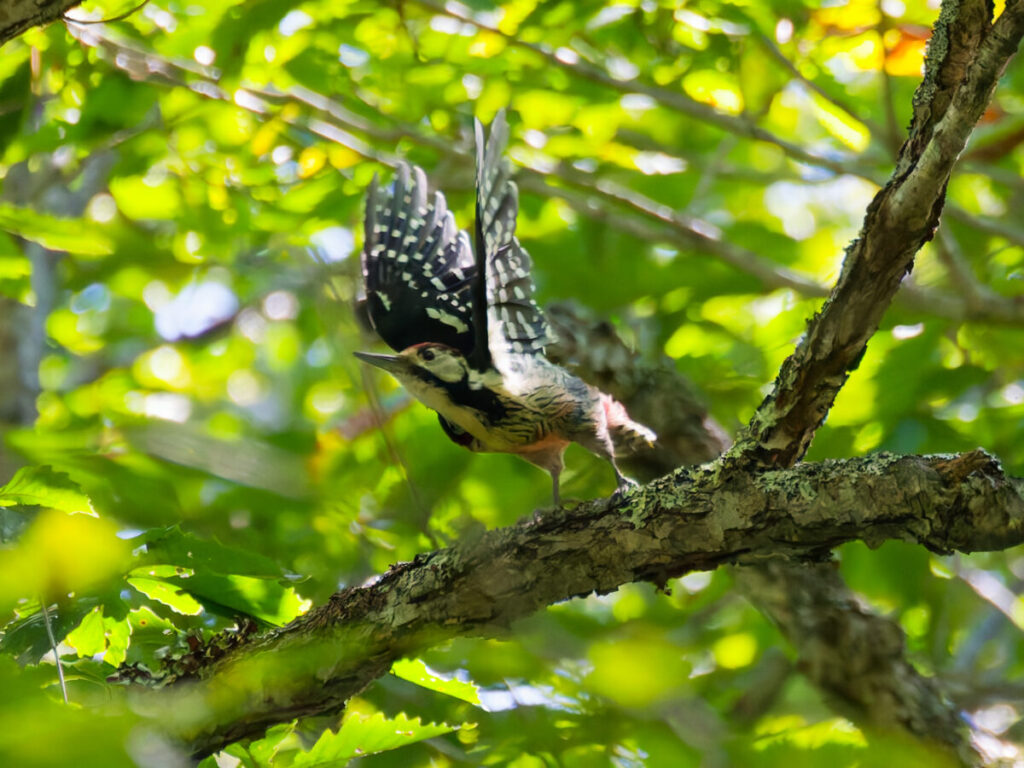 さらに奥に進むと、今度はアカゲラ♀が迎えてくれた。