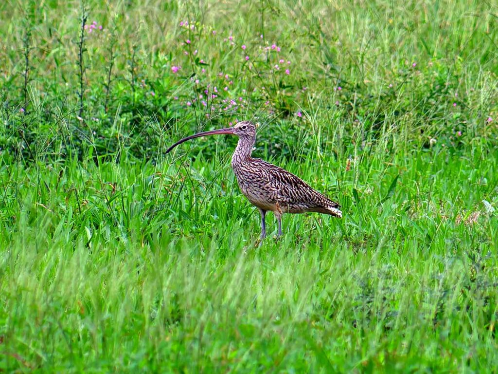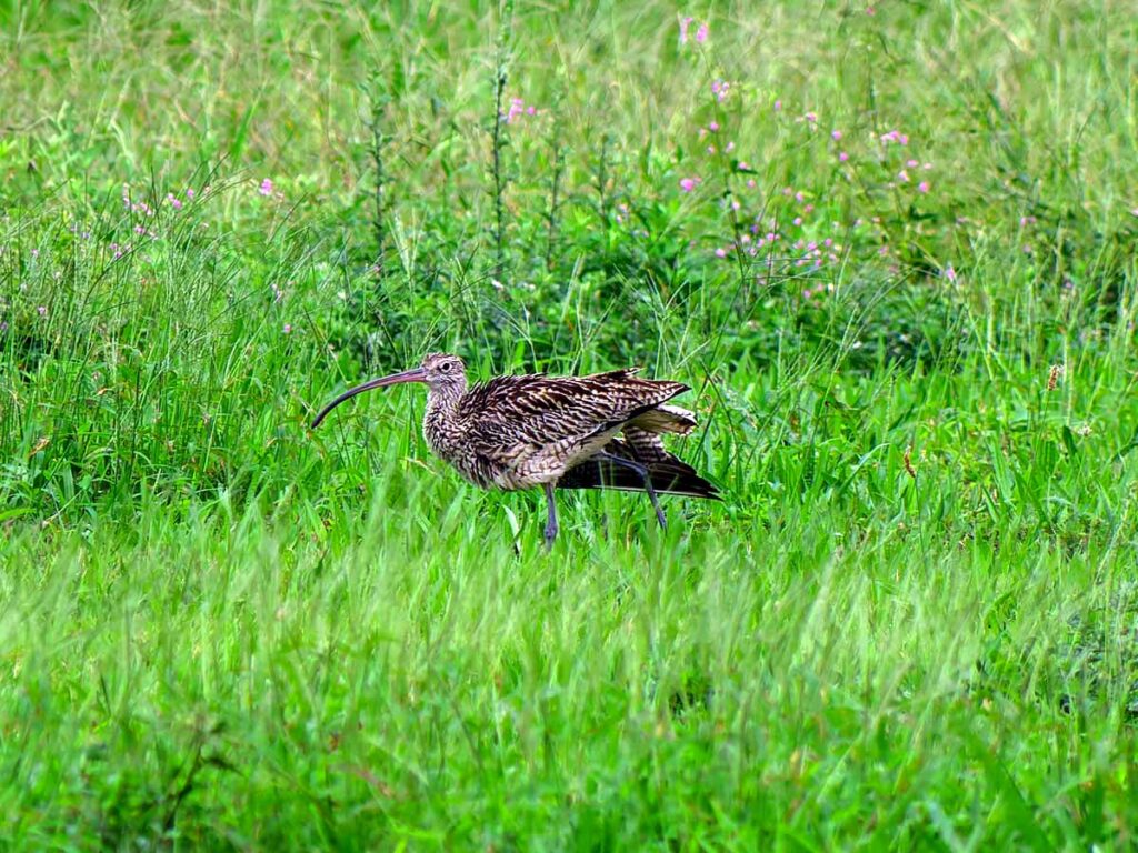 3日前に聞いていたホウロクシギ、やっと@虎さんの都合がついて行ってみました。朝8:30に着いたけれど駐車場があくまで30分待機。開門となりほとんどが釣り人達の中、我々だけ浜とは違う草原へ。少し歩くとすぐに見つかった。どうやら草むらに居る虫を捕っているようだ。ホウロクシギは今までに何度も見ているがすべて水辺だったので、なんか不思議な感じ。少し飛ばれたりもしたがあっという間に色々撮れて大満足。ついでに浜の方をのぞいたら、ノビタキが居たり、@虎がハヤブサを見つけたり、本命以外にも嬉しい収穫。昼前には移動してMFを散策中、メールで「ノゴマ♂出てます」の情報。わぁ、昨日大阪城へ行きながら@虎だけが撮って私は撮り損ねたノゴマだ。大急ぎで行くと、1時間前に餌付けが成功したところですぐに出てきた。秋の人気者を難なくたっぷりとゲット。今日一日朝から大収穫で大満足だ!