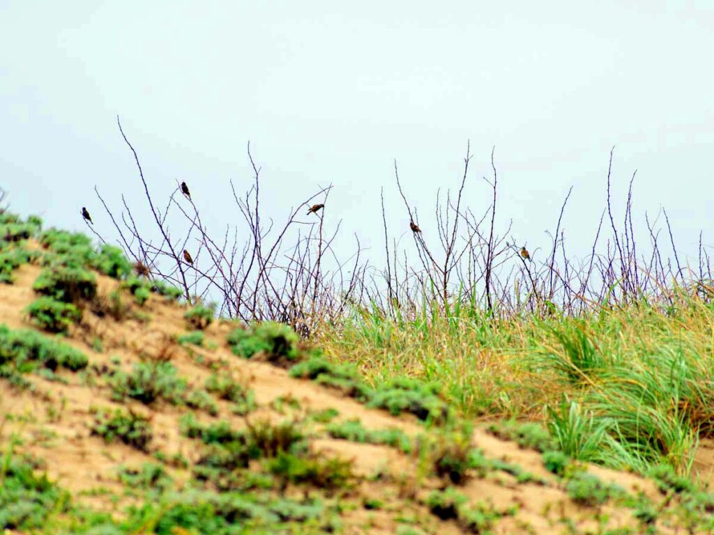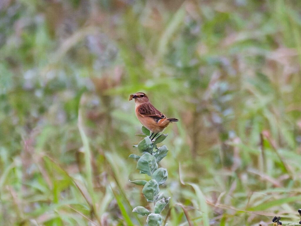 海岸手前の原っぱにノビタキ♀