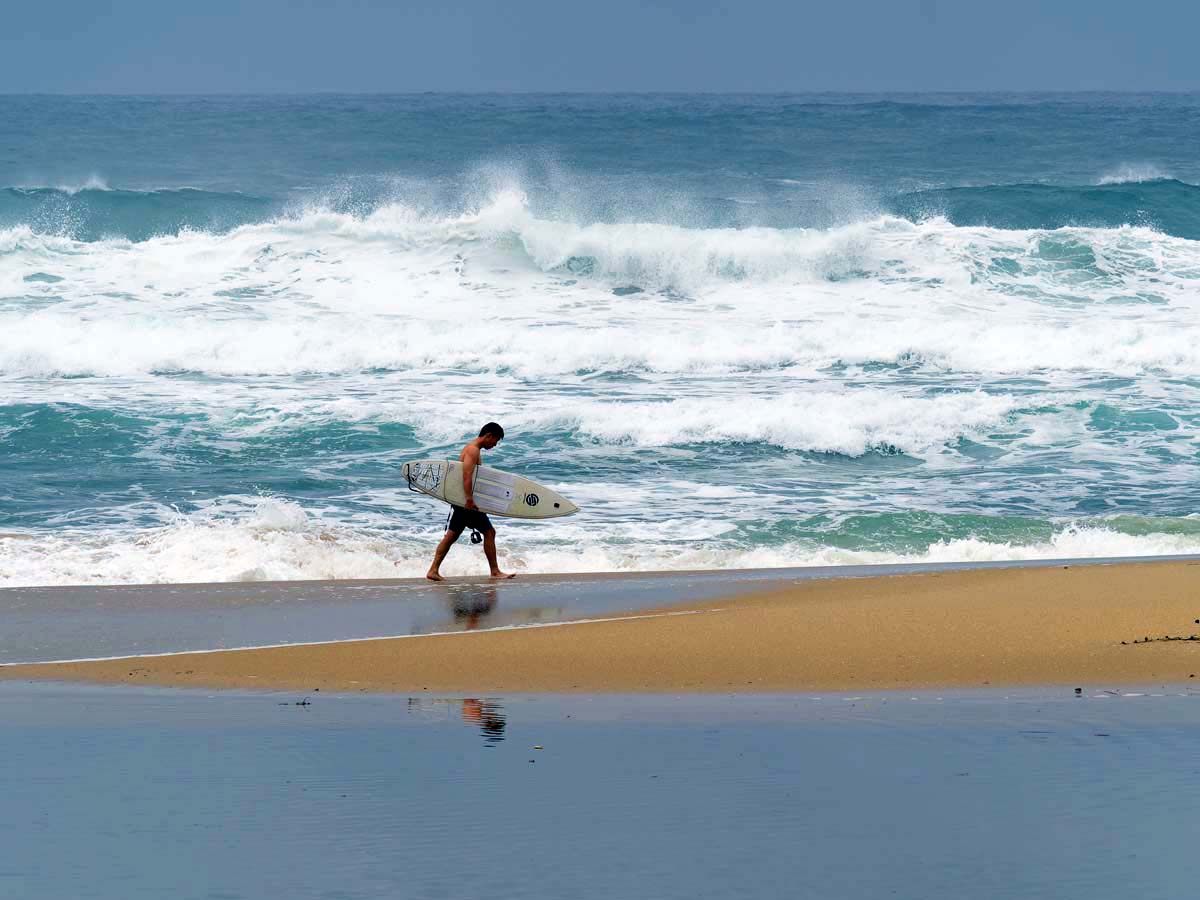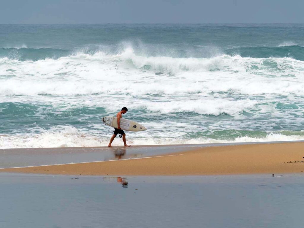 荒れた海にサーファー、いかにも日本海らしい。